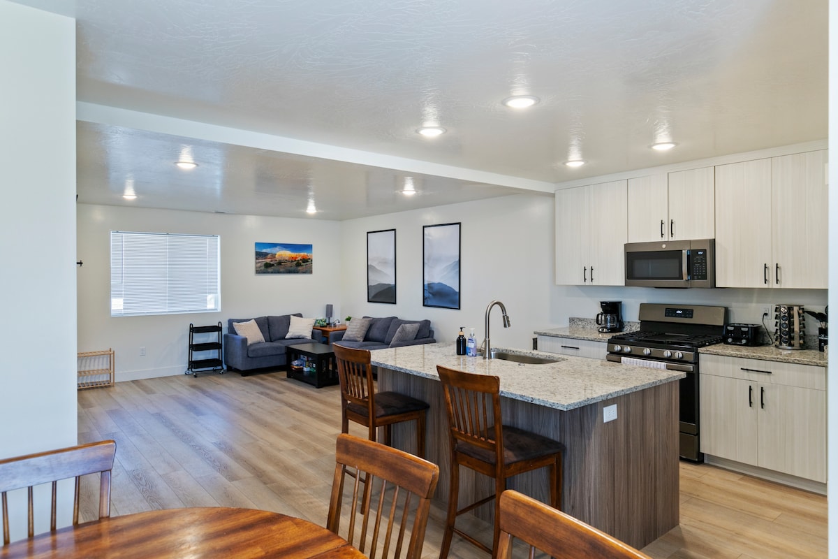 Cozinha Townhome de 3 quartos/2,5 banheiros com despensa e vários eletrodomésticos menores está pronta para criar grandes refeições. Quintal cercado com mesa de pátio. SmartTV na sala de estar e no quarto principal. Venha desfrutar desta luxuosa casa de família no coração do sul de Utah. Atividades: Festivais de Shakespeare, Esqui em Brian Head, campus da SUU, passeios de um dia a Cedar Breaks, Bryce Canyon, Kolob Canyon ou parques nacionais de Zion, além de parques locais. Cedar City tem uma sensação de cidade pequena, mas com as conveniências de uma cidade grande.