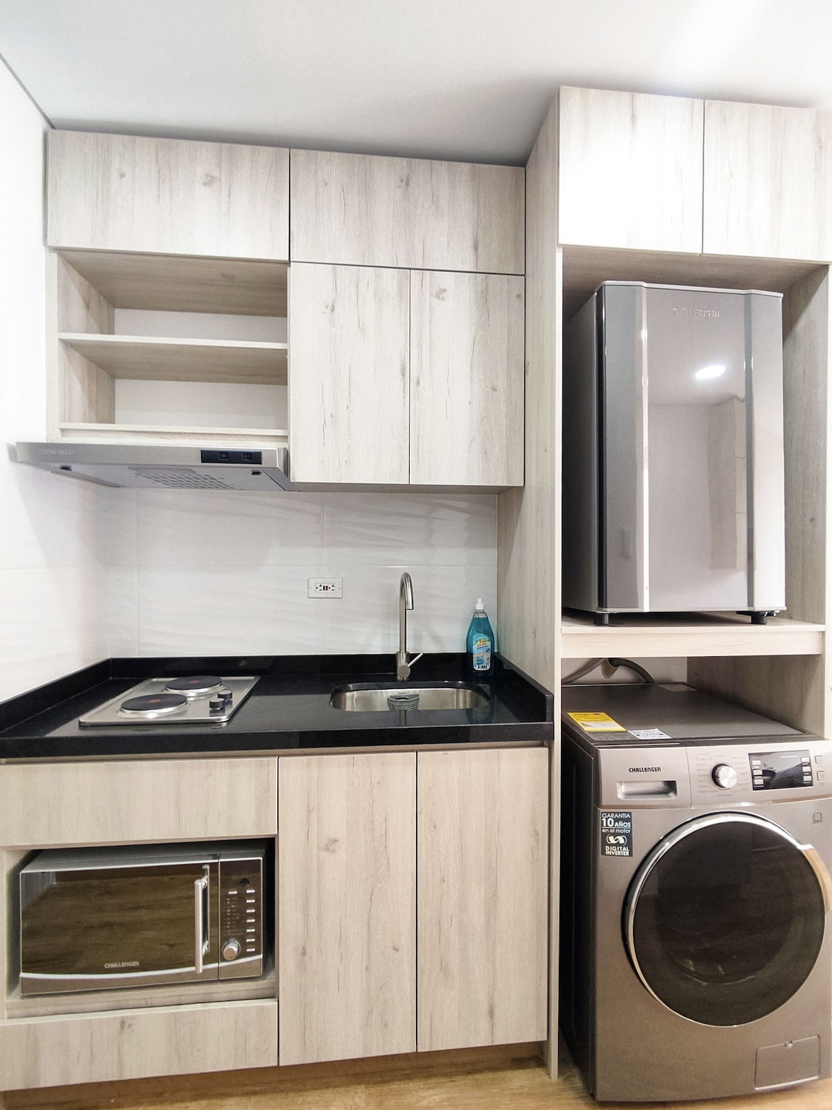 Loft iluminado com máquina de lavar e secar e Wi-Fi + Smart TV