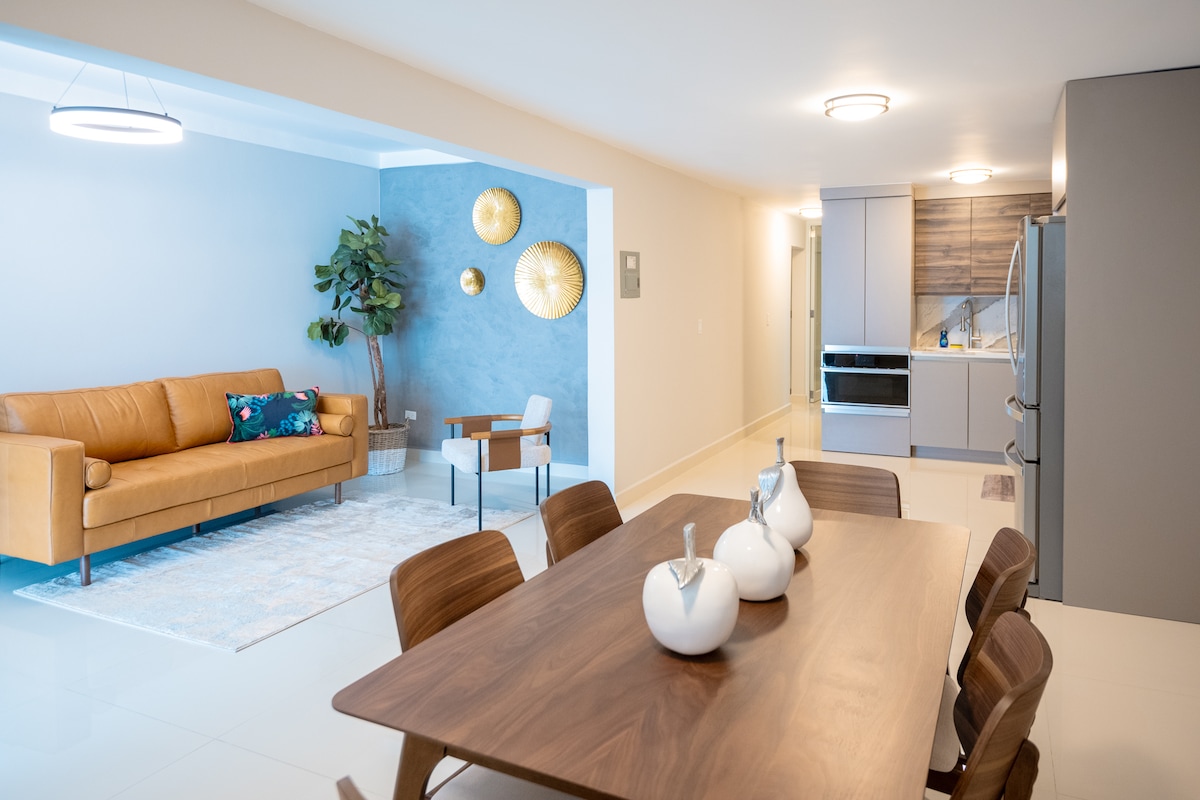 Entre no luxuoso apartamento 4BR 3Bath aninhado em uma área tranquila a uma curta caminhada (10 minutos) de distância do oceano, praias ensolaradas, restaurantes, lojas e atrações emocionantes. Explore Isla Verde ou aproveite o sol porto-riquenho nas praias próximas. O design moderno e a rica lista de comodidades vão deixá-lo maravilhado. ✔ 3 suítes com banheiro privativo, mais 1 quarto. Sala de estar com design✔ aberto Cozinha ✔ Completa ✔ Smart TVs Wi-Fi de✔ alta velocidade Máquina de✔ lavar/secar Acessórios de✔ praia Estacionamento ✔ gratuito na rua