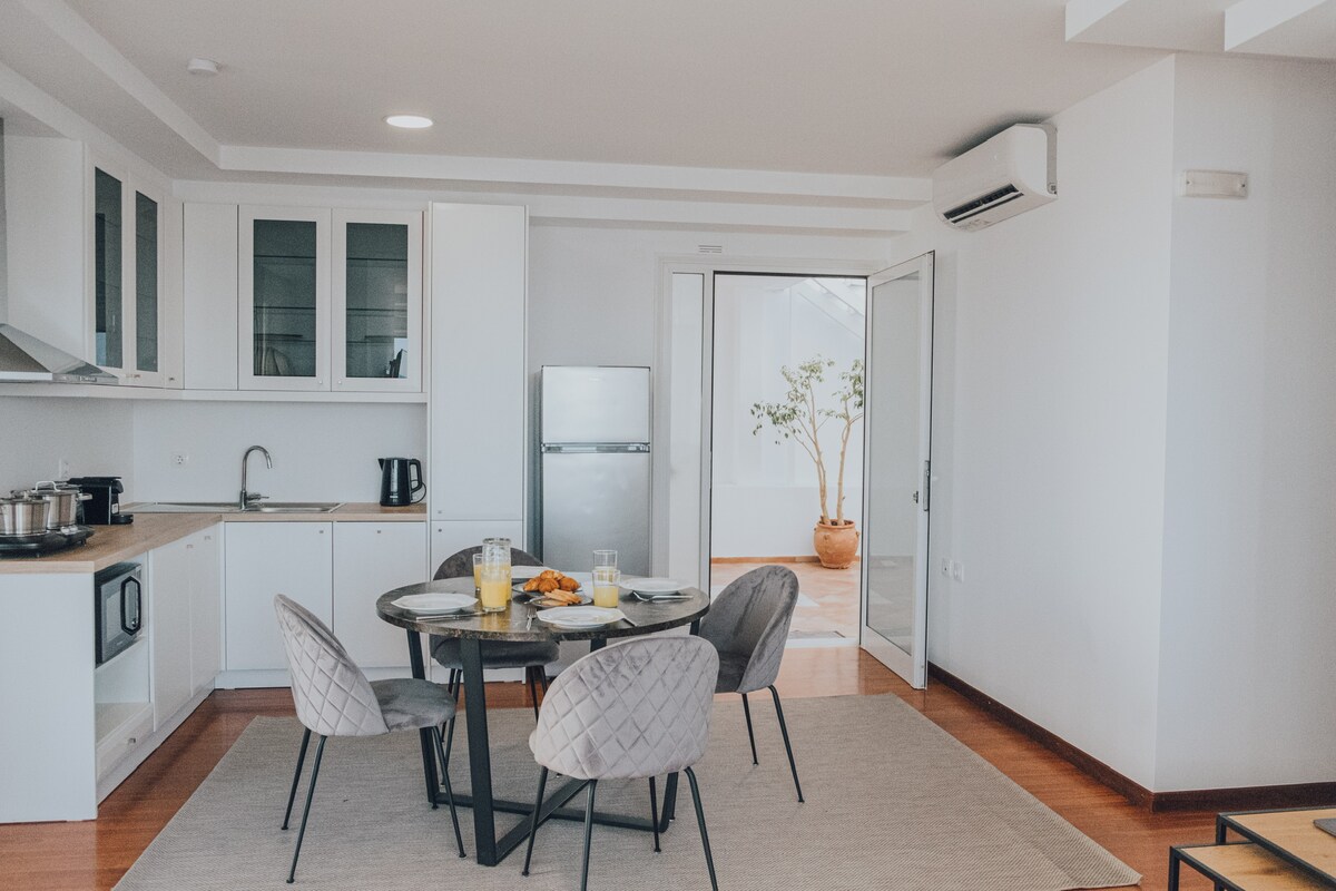 A casa da Lina e do Babis é um refúgio limpo e brilhante de 85 m², com uma sala de estar chique e um canto de cozinha acolhedor e totalmente equipado. Oferece dois quartos com casa de banho privativa e camas de casal, ideais para conforto e privacidade. No exterior, pode relaxar na espaçosa varanda rodeada por um jardim tranquilo. Desfrute da conveniência de estacionamento gratuito mesmo à sua porta. Mesmo ao lado fica o Little Lovers' Nest, uma casa encantadora que recebe dois hóspedes, perfeita para amigos ou familiares que viajam juntos. Verifique a disponibilidade!
