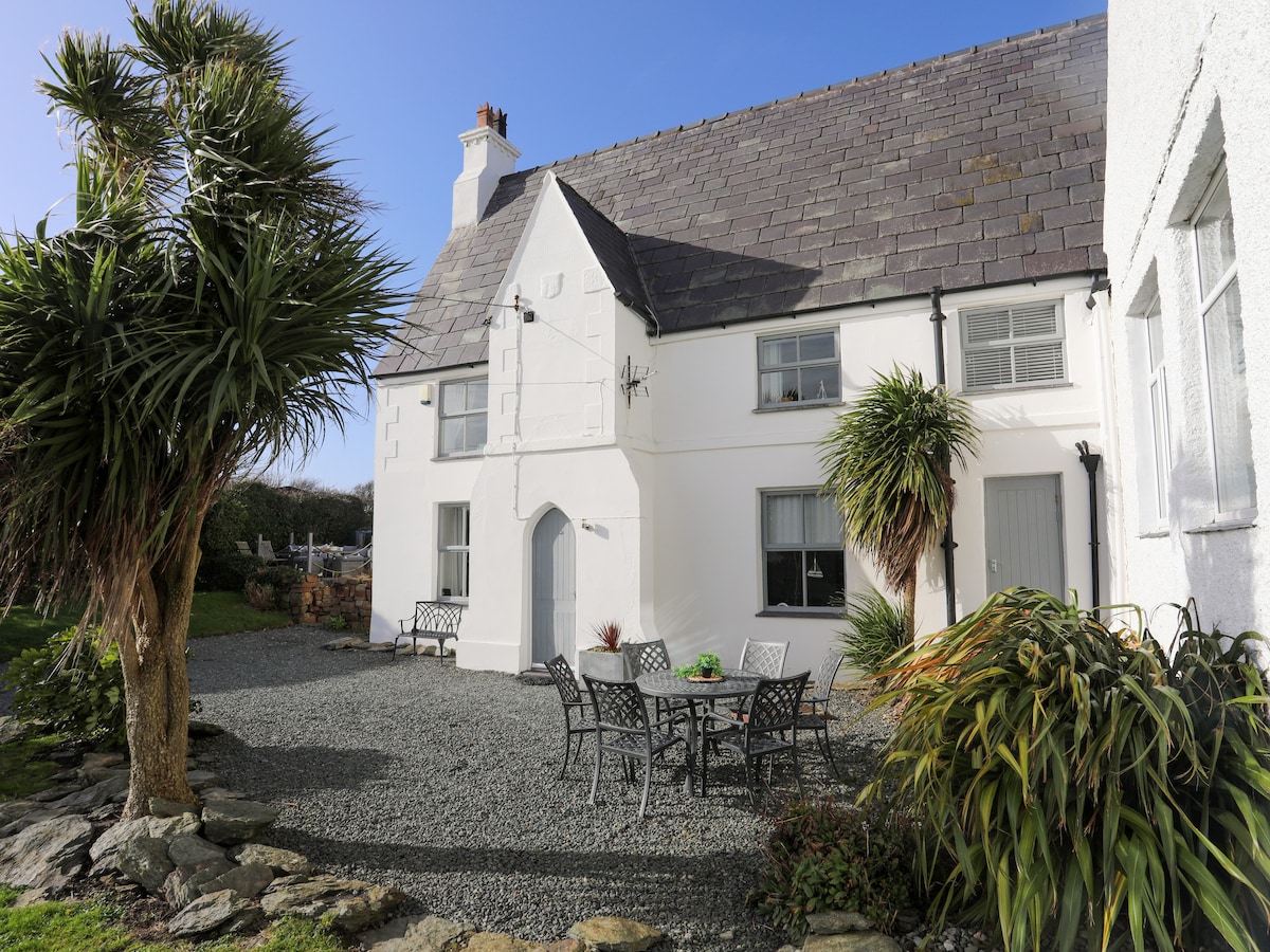 Uma bela casa de campo caiada de branco a poucos passos de uma praia isolada, com vista para a praia de Porth Dafarch e a Baía de Trearddur com as colinas de Snowdonia e a Península de LLyn no horizonte. A praia de areia é cercada por uma deslumbrante costa rochosa que é popular para esportes aquáticos, como caiaque, remo e mergulho em um naufrágio próximo. É familiar, o refúgio perfeito com caminhadas costeiras deslumbrantes da nossa porta da frente. 5 minutos de carro de lojas, restaurantes e 2 campos de golfe.
