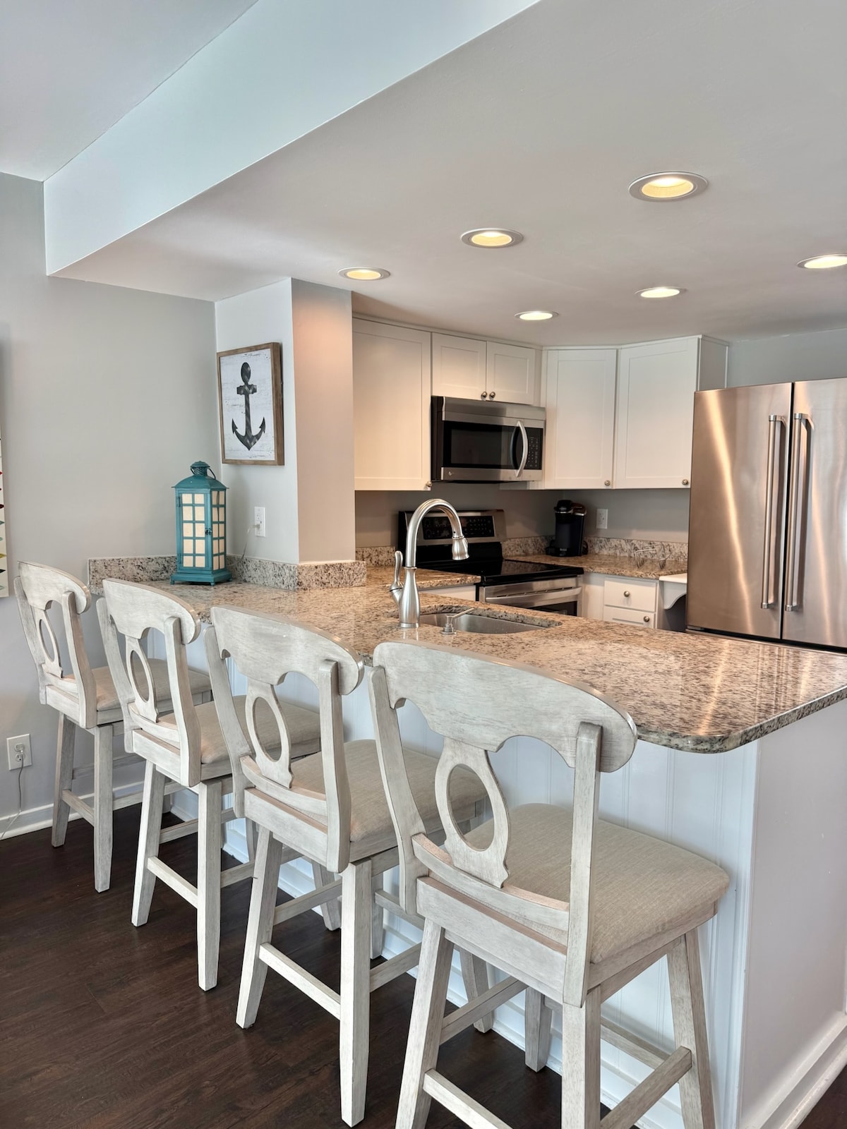Desfrute de um nascer do sol deslumbrante à beira-mar e jante em uma mesa aconchegante na sua própria varanda coberta. O cais privativo e a piscina estão a poucos passos do oceano. Veja o pôr do sol deslumbrante e o Farol da Ilha de Sullivan do quarto e da entrada. Decoração náutica, pisos de tábuas de vinil premium e paredes de madeira se fundem neste apartamento iluminado, mantendo um ethos de charme sulista. A cozinha gourmet está bem equipada com eletrodomésticos de tamanho completo, máquina de gelo, dispensador de água filtrada, bancada de granito, iluminação sob a bancada e um bar de café conveniente com várias opções de infusão! As vistas panorâmicas para o mar são as melhores disponíveis no Sea Cabins! Localizado no 3º andar, fica a apenas 3 portas do final do edifício C. Desfrute de belos nasceres do sol diretamente da sala de estar, cozinha ou varanda, e vistas do pôr do sol do Farol da Ilha de Sullivan da porta da frente ou da janela do quarto. Você terá acesso privativo à praia, piscina comunitária e cais de pesca. Lojas, restaurantes, mantimentos e entretenimento da ilha estão a poucos passos de distância! Está convenientemente localizado perto do Monte. Agradável, Shem Creek e o centro histórico de Charleston, oferecendo opções ilimitadas para refeições, lojas e entretenimento. Esta casa acomoda 4 pessoas com uma cama tamanho queen e um sofá-cama tamanho queen com colchão de espuma de memória. Desfrute de suas refeições no bar ou na varanda. Instalações de churrasco ao ar livre e mesas de piquenique também estão disponíveis. A casa da piscina dispõe de banheiros privativos e lavanderia operada com moedas. Acesso apenas por escadas (sem elevador). Casal Anfitrião ausente O apartamento está localizado em Isle of Palms, uma cidade na ilha de barreira estreita de mesmo nome. É conhecida por suas praias cercadas por condomínios e restaurantes. Tartarugas marinhas nidificam na região. Um parque próximo inclui uma praia, áreas de piquenique e um parque infantil. Jantar, compras e entretenimento a uma curta distância a pé. Apenas a uma curta distância de carro da histórica Charleston, SC! Por favor, tenha em mente que a propriedade tem uma campainha de vídeo Ring no local (na porta da frente). Não há câmeras/dispositivos de vigilância dentro da casa ou na varanda.