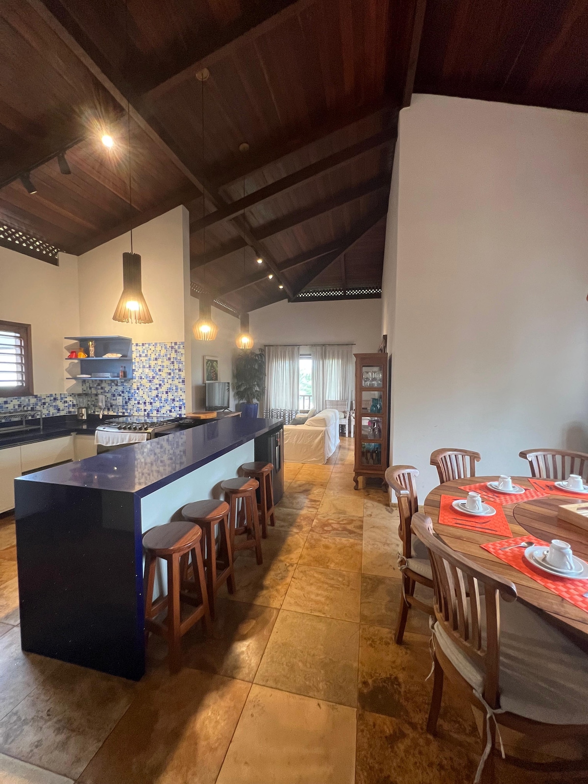 Casa avarandada na praia de Flecheiras à 130 km de Fortaleza- CE. Salas e cozinha integradas, pé direito alto e paredes largas que garantem grande conforto termico. De frente ao mar, com grande espaço verde na frente da casa. Projeto de Fausto Nilo Cozinha equipada, churrasqueira equipada. ventiladores em todos os quartos.