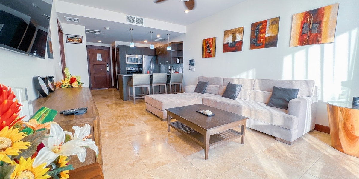 Diamante del Sol 502S 5º andar Vista para o mar. Este apartamento à beira-mar no 5º andar com vista para o mar é perfeito para suas férias na Costa Rica, com vistas deslumbrantes para o pôr do sol sobre o Oceano Pacífico e vegetação tropical exuberante e verde como pano de fundo. Está totalmente mobiliado, incluindo segurança 24 horas por dia, 7 dias por semana, com acesso ao suporte de atendimento ao cliente em todos os momentos. O apartamento está equipado com Internet sem fio, televisão a cabo em todos os quartos, TVs de tela plana de 64", ar condicionado, piscina, chefs e massagistas disponíveis mediante solicitação.