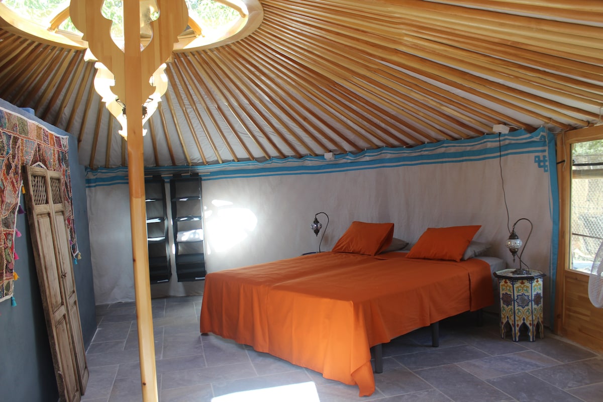 Iurte mongol luxuoso com casa de banho privativa na Bed en Breakfast Casa La Nuez. Ideal para visitar a região (Córdoba e Granada). Veja os nossos outros anúncios para os nossos 2 quartos extra. O pequeno-almoço está incluído e os hóspedes têm acesso ao seu próprio terraço para banhos de sol e ao jardim com piscina. O jantar é uma opção quando reservado antecipadamente. La Carrasca é uma parte muito pequena de Almedinilla, a nossa aldeia. Os hóspedes que tentarem encontrar-nos através do Sat-Nav são aconselhados a entrar em Almedinilla como destino.