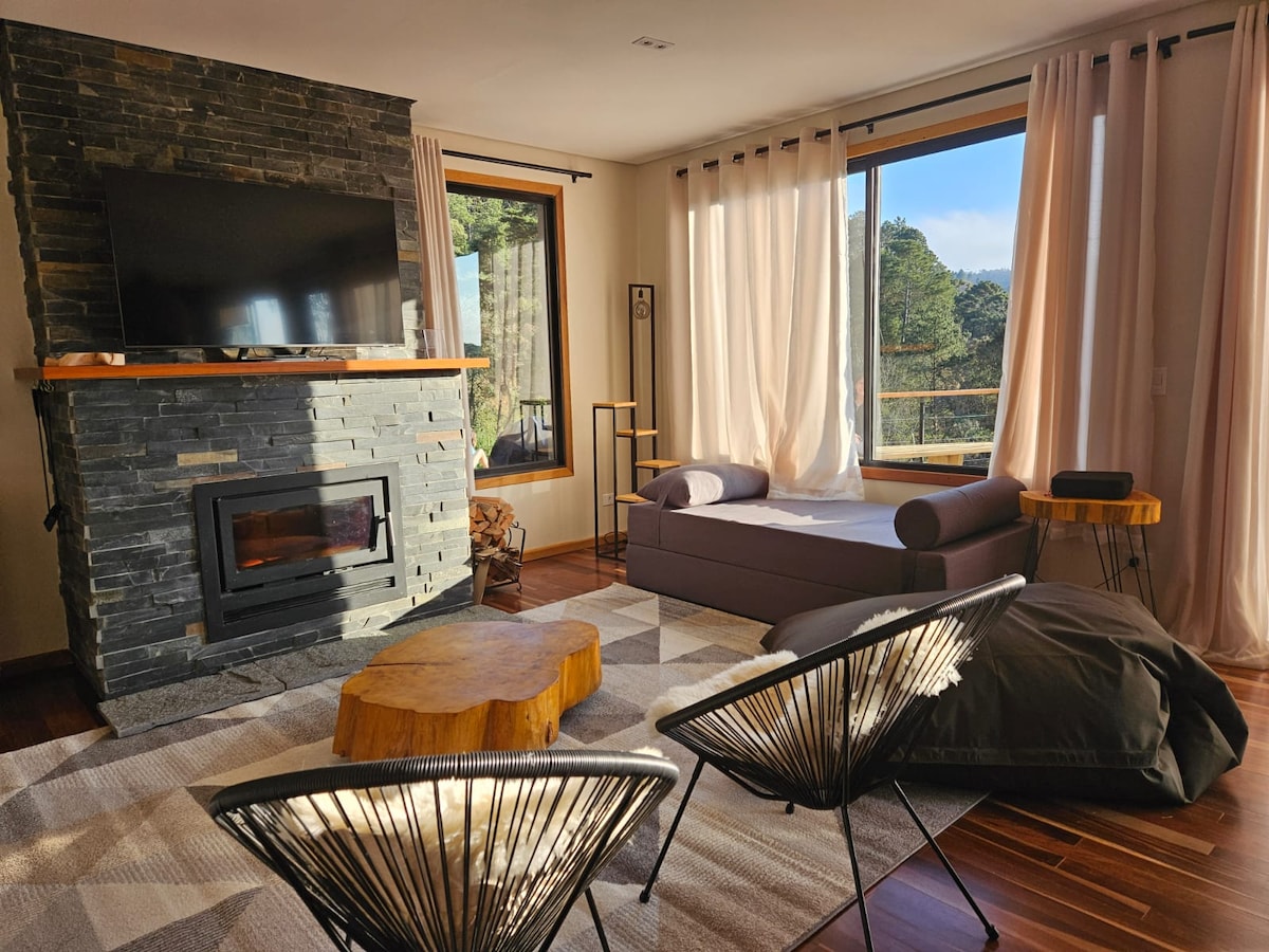 Relaxe neste espaço calmo e cheio de estilo. Projetada especialmente para casais, nossa cabana oferece uma mistura de serenidade da montanha e luxo moderno. Acenda a lareira a lenha para noites aconchegantes, aprecie o céu estrelado da janela do quarto ou simplesmente desfrute da tranquilidade deste refúgio na montanha. Para uma melhor experiência, oferecemos roupão e chinelos, amenities loccitane, cafeteira nespresso, banheira e sais de banho, lençol 300 fios. Café da manhã não está incluso.