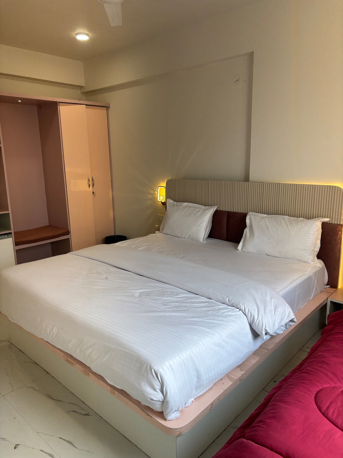 Quarto Vermelho Jaipur~ 1BHK~ 50 tons de cinzento