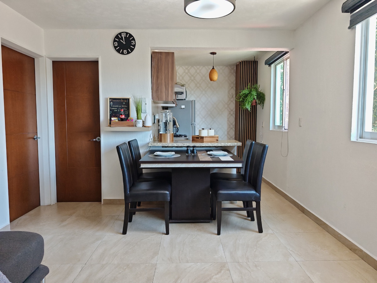 Descubra um belo loft de designer, onde o conforto, a limpeza e o bom gosto se combinam para lhe proporcionar uma experiência inesquecível. Cada canto está cuidadosamente decorado, ideal para descansar, trabalhar ou desfrutar de uma escapadela em família, em grupo ou a dois. Localizado dentro de uma subdivisão privada com vigilância 24 horas, além de acesso autónomo. Perfeito para estadias até 15 dias, viagens de negócios, turismo ou simplesmente para descontrair num espaço moderno e acolhedor.