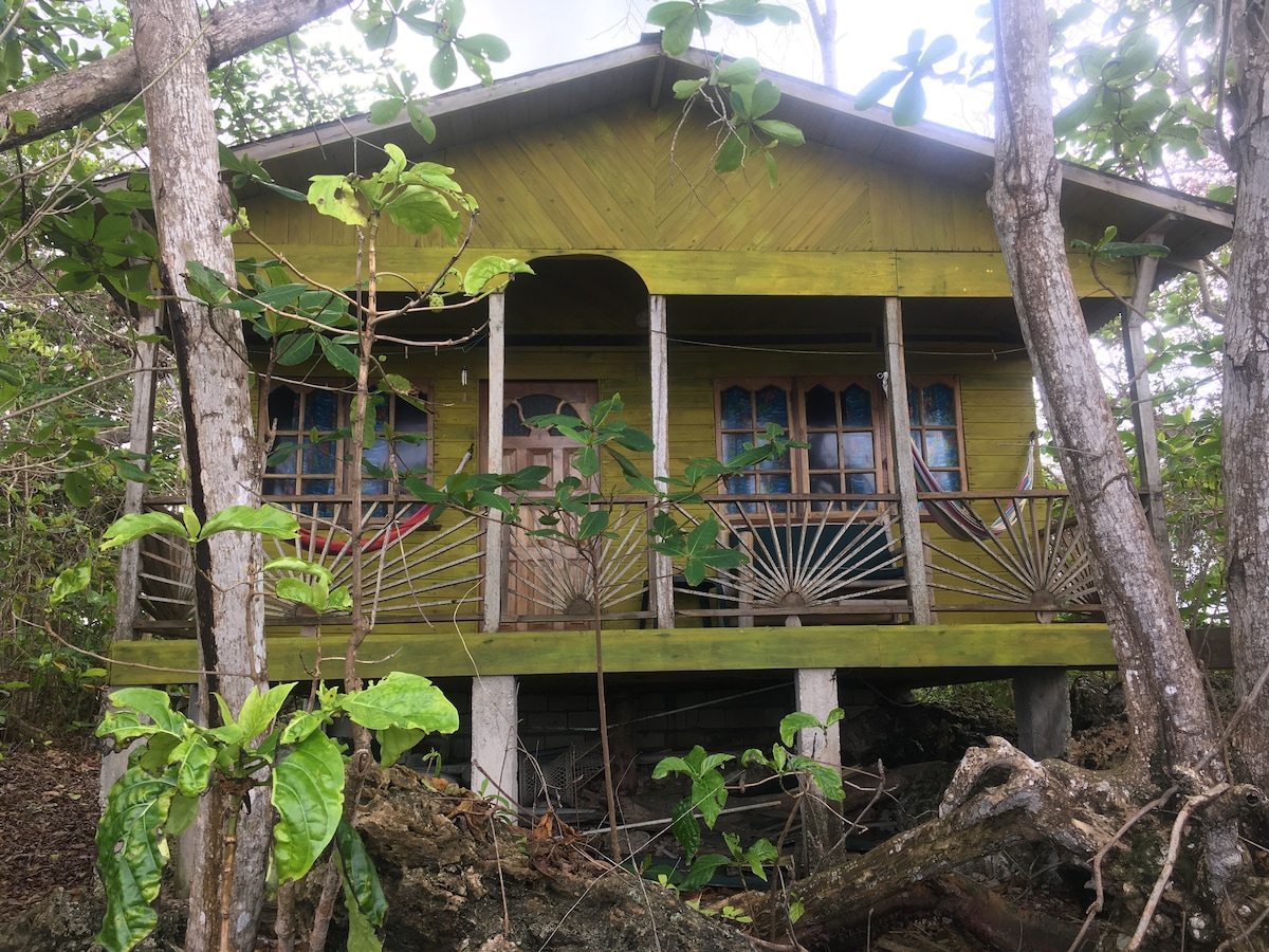 A verdadeira Jamaica. Uma casa de madeira com dois quartos, uma cozinha grande, uma sala de estar espaçosa e um alpendre. A propriedade vedada é privada. A praia fica mesmo em frente à casa de praia. Little Bay é um lugar muito natural, com poucos turistas. Estamos completamente autossuficientes, com energia solar, e recolhemos a nossa própria água da chuva. 💦