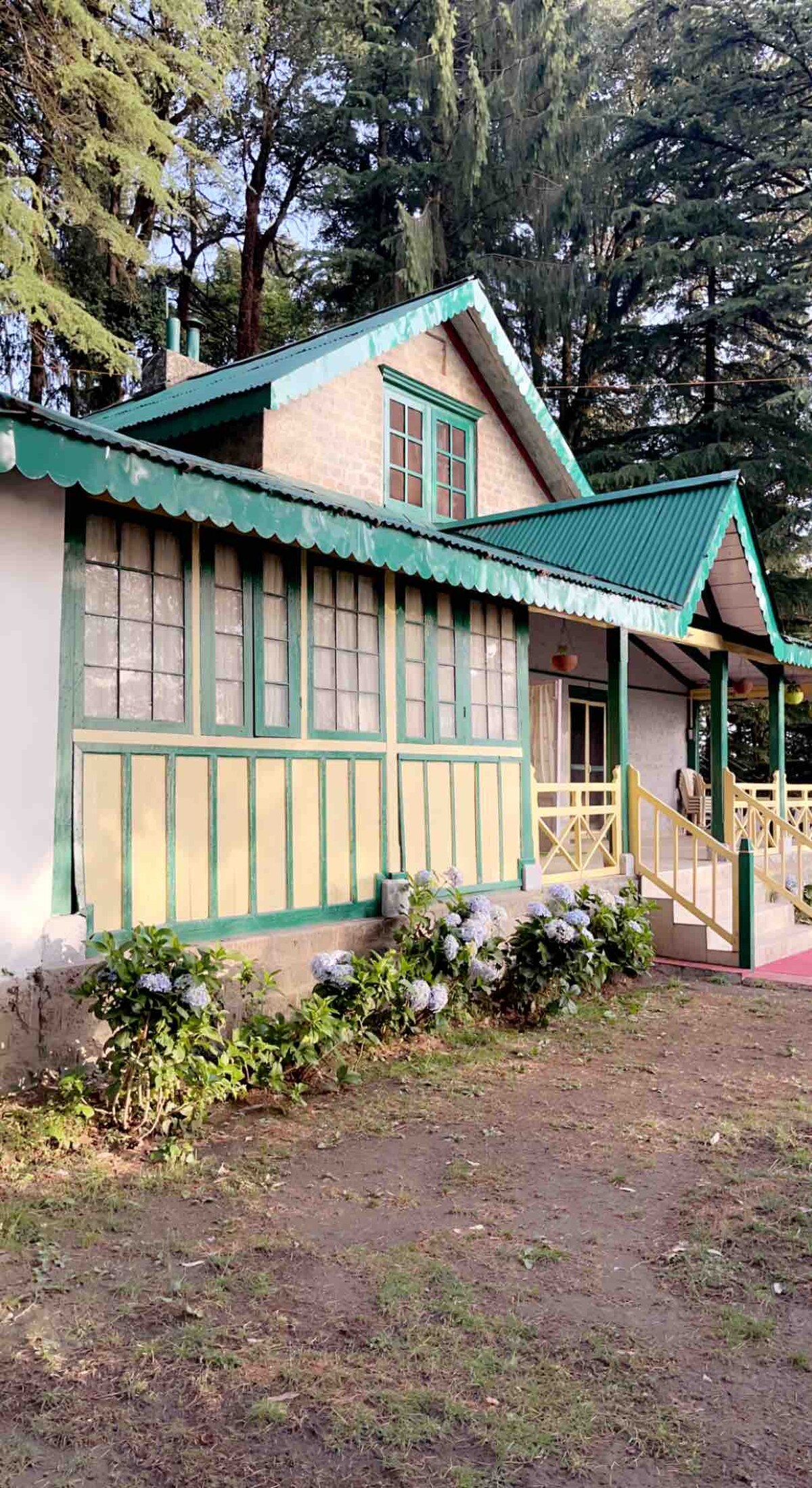 A nossa casa de campo tem vistas deslumbrantes de Pir Panjal e tem vista para a floresta de Deodar com acesso ao santuário de vida selvagem de Khajjiar e é ideal para uma estadia curta/longa. Rodeado por pinheiros e montanhas cobertas de neve, a vista deslumbrante da nossa casa de campo irá transportá-lo para um refúgio feliz longe da agitação da vida da cidade. Pode optar por passar o seu tempo a caminhar ou caminhar na floresta mais cénica de Himachal ou acampar sob as estrelas dentro e ao redor da região.