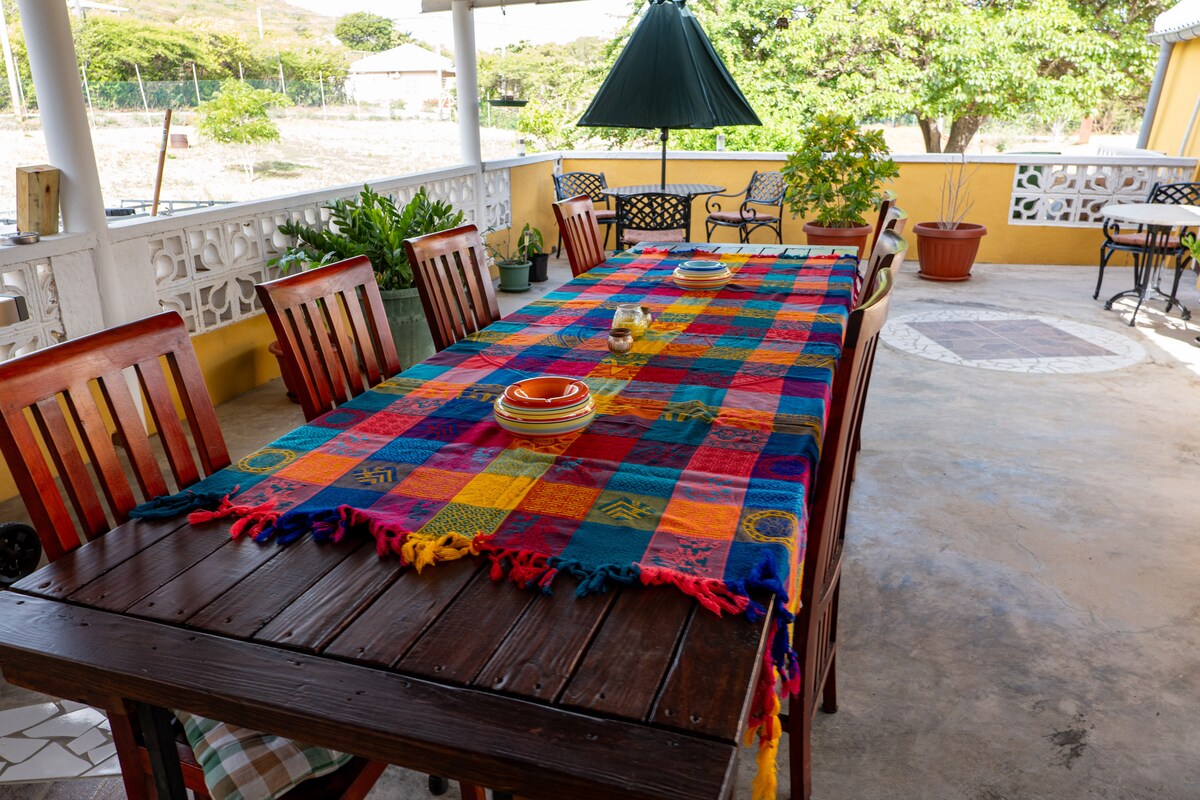 De Villa Rancho is een prachtige Villa op een perceel van 12.700 M2 midden in het groen. Het uitzicht is weids op de prachtige natuur van Curacao. Vogels zie je vliegen en zingen de hele dag. Villa Rancho heeft een privé zwembad van 11 meter lang en 4 meter breed met een ruim zonneterras. Ook is er veel schaduw mogelijkheid onder een grote palapa met canvas doek Verder is er ook een gas barbeque met een ruime lounge hoek Buitengewoon kindvriendelijk Meer privacy en rust krijg je niet op Curacao