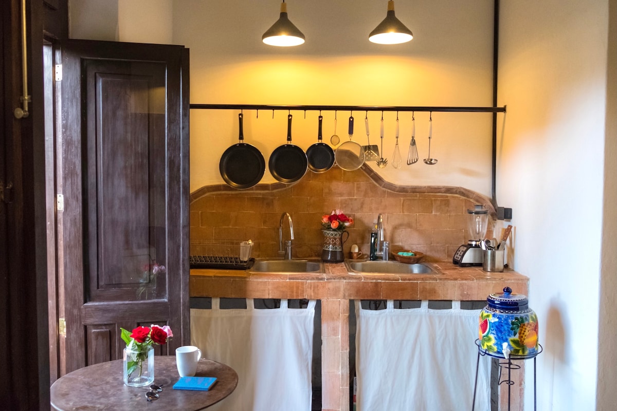 Sua família vai estar perto de tudo ao ficar neste lugar bem-localizado. Este lugar está em uma excelente localização, a apenas 5 minutos a pé do Mercado Hidalgo e a 10-15 minutos do Jardim principal. Ideal para amigos, casais ou famílias pequenas que ficam por períodos longos ou curtos. Temos uma garagem espaçosa que pode acomodar confortavelmente um SUV ou uma caminhonete. Há uma grande cozinha com todos os utensílios básicos de cozinha e uma pequena geladeira. **NOTA** A casa não é segura para bebês com menos de 2 anos