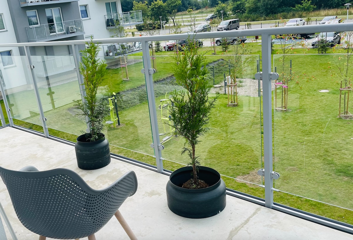 Apartamentos Genius Park Gąski 4D com um belo jardim