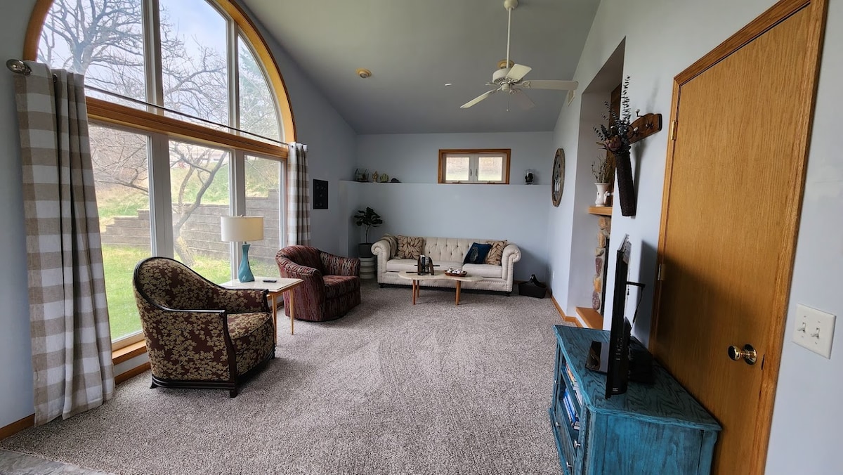 Enjoy the peaceful beauty of Central Iowa's rolling hills, prairies, and distant forests while staying in our newly constructed barndominium. Take in the sweeping views, singing birds, and diverse wildlife from the front porch. Cozy up inside by the electric fireplace, enjoy a movie on Roku TV, curl up in the reading nook, utilize the portable desk or get competitive while playing board games. The barn is located behind our house. The driveway is shared with lots of parking next to the barn.