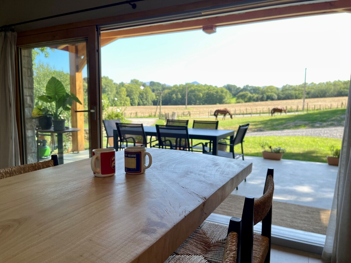 Terraço e vista para a natureza, refúgio perto de Espelette