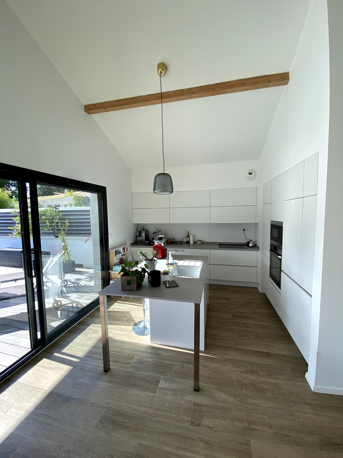 Casa térrea. Mobiliário moderno e decorações. Cozinha equipada, sala de estar, sala de estar, 3 quartos (1 cama 160, 2 camas 140), casa de banho, 2 WC, 1 quarto com casa de banho privativa (1 cama 160. Terraço coberto. Jardim privado não fechado. Mobiliário de jardim. Churrasqueira. Não adequado para pessoas com mobilidade reduzida. Possibilidade de arrendamentos de curta duração na época baixa a partir de 3 noites. Um apartamento de 33 m2 adjacente à casa também está disponível para arrendamento com uma entrada independente.
