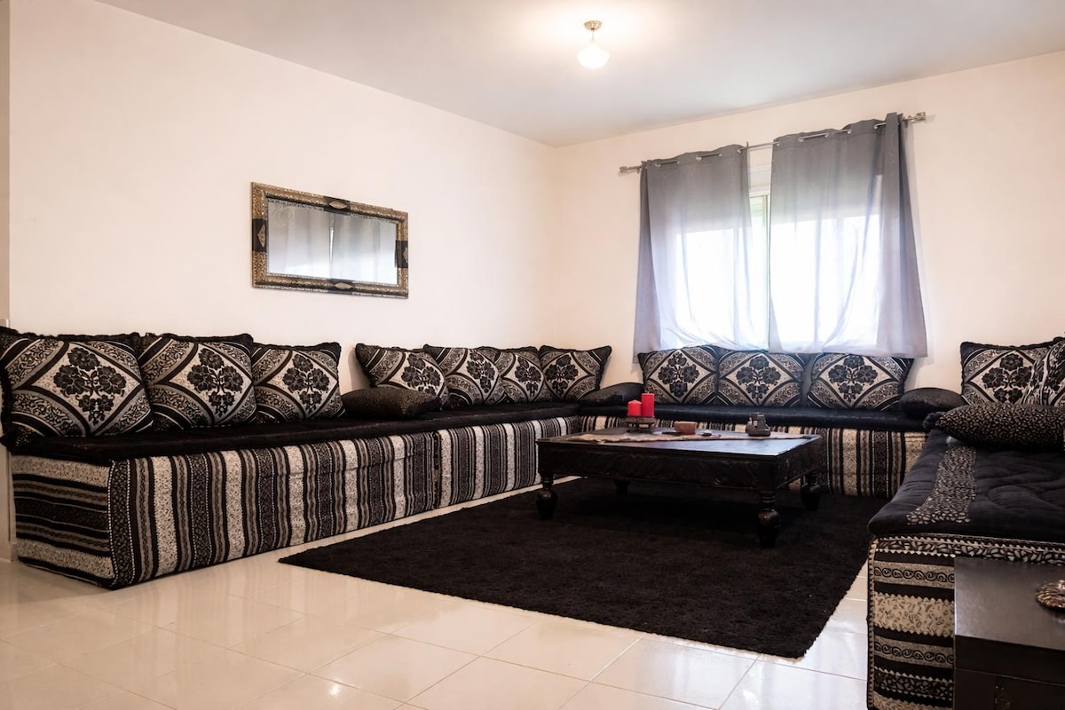 Crie memórias nesta nova casa única e familiar. "O apartamento está convenientemente localizado perto da Praia de Saidia (25 minutos) e da Praia de Ras El Ma (35 minutos). Tafoughalt (30 minutos) Fezouane 20 minutos Encontrará tudo o que precisa nas proximidades... "Há obras perto do apartamento e às vezes pode ouvir-se barulho. Gostaria de o informar que não sou responsável por este barulho. Obrigado.