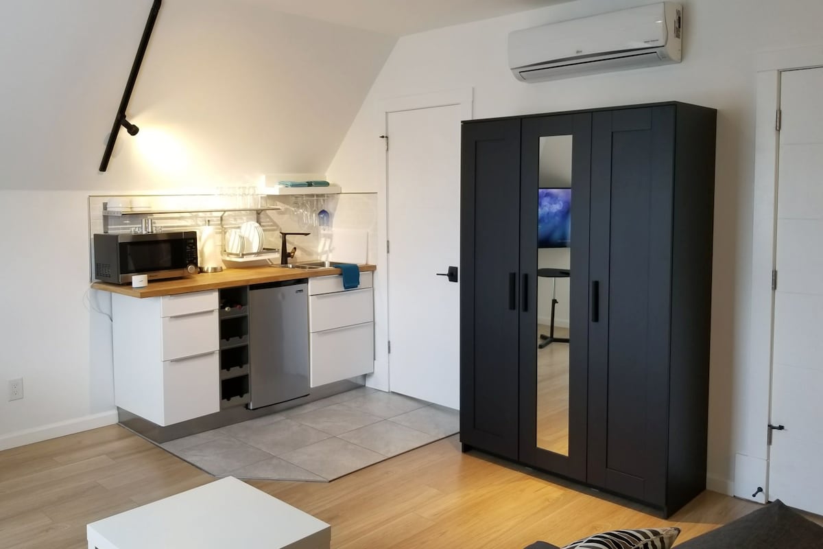 Este Mini Estúdio é para quem precisa de um espaço limpo e fresco. Tem uma nova cama queen, sofá-cama, uma kitchenette e uma casa de banho completa com uma entrada privada no 3º andar de uma bela mansão de Pittsburgh dos anos 1890. É do tamanho de uma sala grande e funciona muito bem com os hóspedes que estão a planear trabalhar, ou sair para desfrutar da cidade e voltar para um lugar seguro, limpo e confortável para recarregar as energias para a noite(não adequado para crianças com menos de 10 anos).