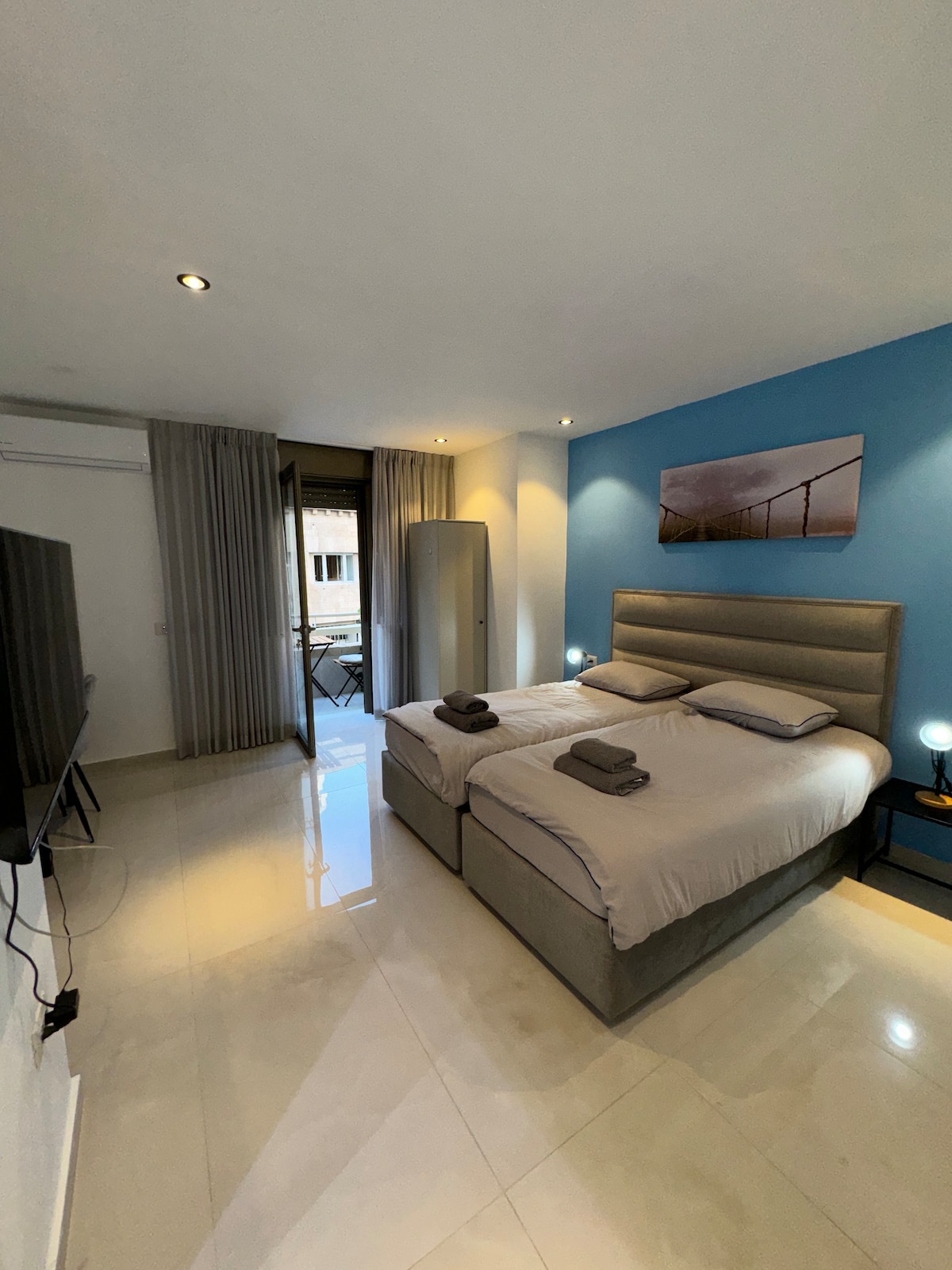 O apartamento está localizado no luxuoso projeto Haneviim Boutique na recém-restaurada rua Haneviim, a rua mais espetacular de Jerusalém. A Cidade Velha, o shopping Mamila, a Rua Jaffa, o shuk Machane Yehuda e os melhores bares e restaurantes ficam a poucos minutos a pé. O edifício tem pátio e jardins deslumbrantes, um gerente 24 horas, estacionamento subterrâneo, elevador Shabbat. O apartamento foi mobiliado com eletrodomésticos de alta qualidade, camas e eletrônicos. É bom para famílias, solos, casais.
