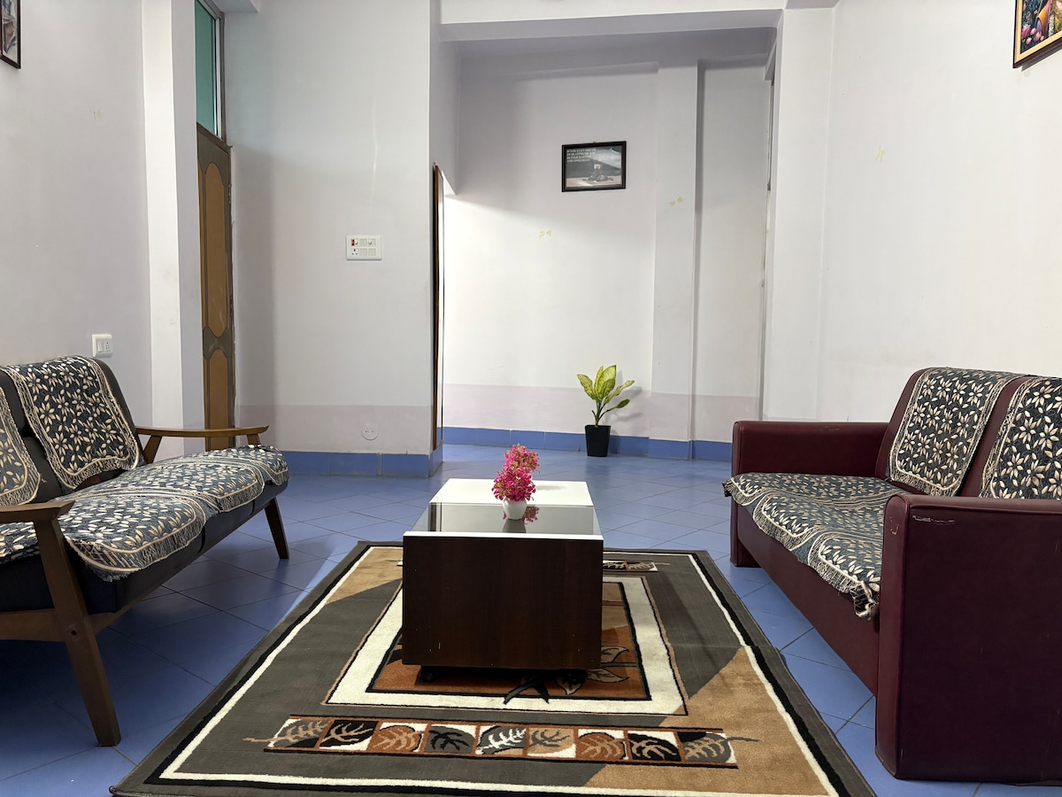 The place is completely renovated to suit the need of any family who is looking for a comfortable stay. It is located in a very peaceful locality. Our staff will be at your service 24x7 and will fulfil your daily needs. Any other request such as home food, vehicle, priest for Pooja at the temple, etc. will be arranged. Power backup is also available. Rooms are equipped with coolers. Services such as pick and drop facility from station/mandir can be arranged. Extra guest (Rs 500/ person)