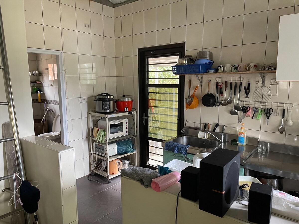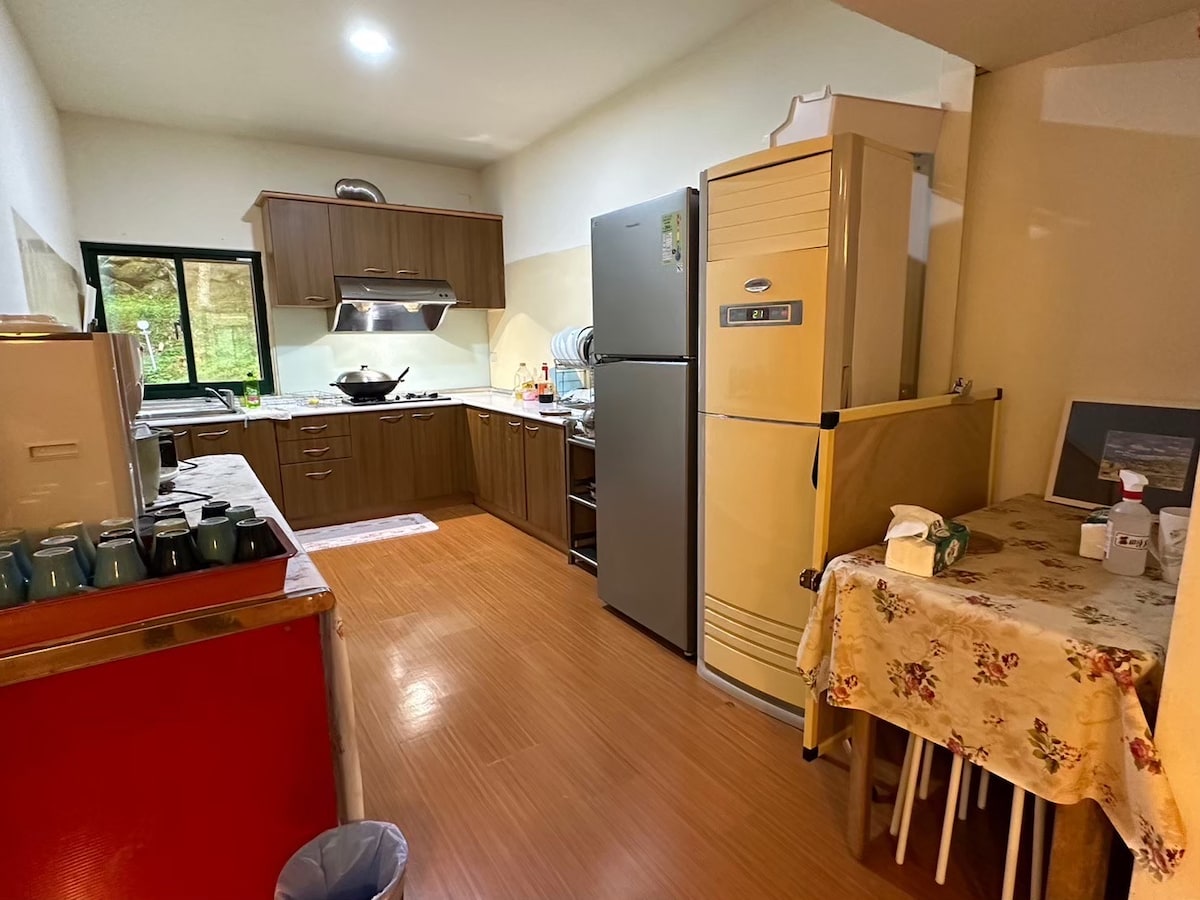 Moradia com janela para o pátio paisagístico lindamente perto da floresta natural, cultive amigos, amigos e colegas. Fique nesta casa espaçosa e tranquila sob o terraço de flores, esqueça todas as preocupações do seu coração. Existem 3345 quartos para quatro pessoas, dois dos quais são para três pessoas no 1.º andar, que podem ser utilizados por idosos.Apenas um quarto tem casa de banho, os restantes são partilhados.O tamanho da cama está indicado no álbum.Todo o edifício tem ar condicionado e aquecimento. Há dois chuveiros e três casas de banho, Há panelas e frigideiras de cozinha, tigelas, chávenas e pauzinhos, e há duas grelhas para churrasco, por favor traga as suas próprias redes retangulares e carvão. Há mahjong e um KTV simples. Muitos pirilampos em abril e maio Traga um animal de estimação: 1500 $, a taxa para limpar o chão dos pelos. Pequeno-almoço e jantar: pode trazer os seus próprios ingredientes e cozinhar na cozinha Por perto , Tieling Farm, Garden 6, Red Rose, Lavender Forest A cozinha tem de ser recolhida, o lixo tem de ser organizado Há gel de banho, champô e toalhas grossas. Por favor, traga a sua própria escova de dentes e pasta de dentes. 63-5 Saitian, Xinle Village, Tsim Shi Township