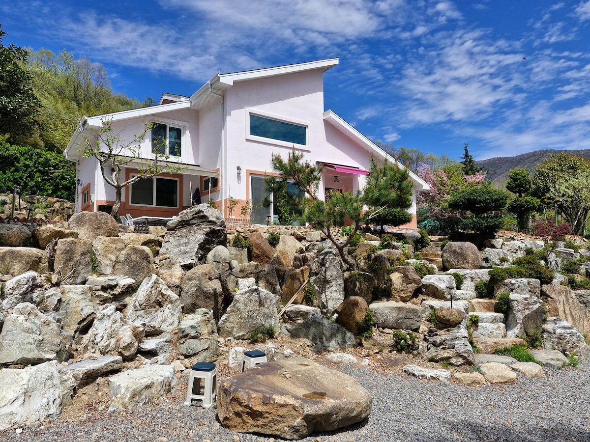 Há dois pequenos vales ao lado da acomodação Na primavera, as flores de maçã exalam um aroma, no verão, você pode mergulhar os pés na água fresca do vale, no outono, toda a aldeia parece uma pintura colorida e no inverno, a montanha Baekunsan vista de longe é linda!