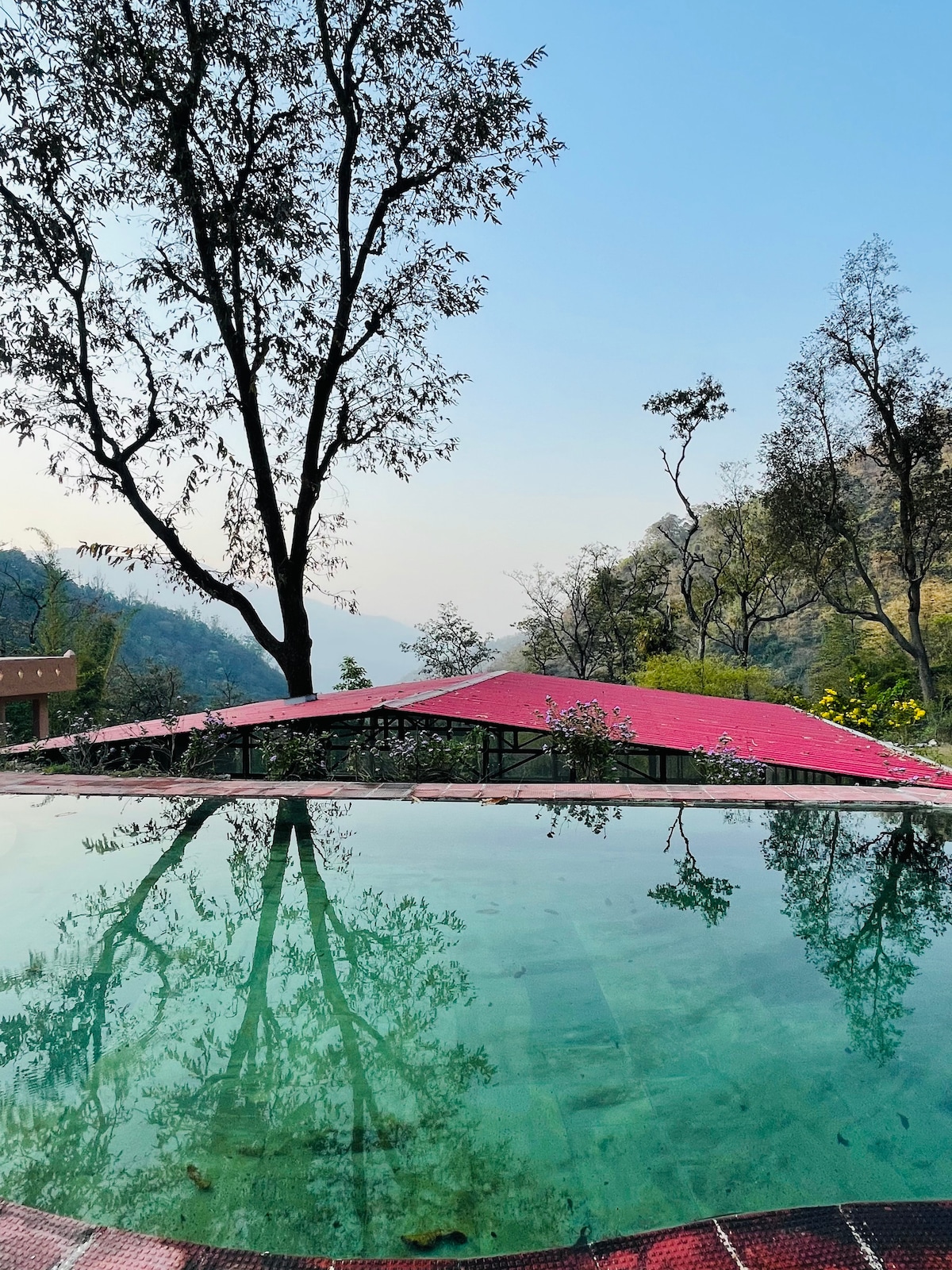 Afaste-se da agitação e fique sob as estrelas. Localizado no topo das cascatas de Neer a 4 km de Laxman jhula, Rishikesh. o, damos as boas-vindas a todos os amantes da natureza para desfrutar da natureza intocada no nosso Acampamento da Natureza. Principais Destaques > Duas piscinas privadas de primavera naturais ao ar livre > Vista deslumbrante de Majestic himalayas e ganga >Área de estar ao ar livre com luzes quentes de humor > Refeições vegetarianas/veganas orgânicas provenientes da nossa própria quinta(Nature Care Village). >Yogashala com vista para a montanha.