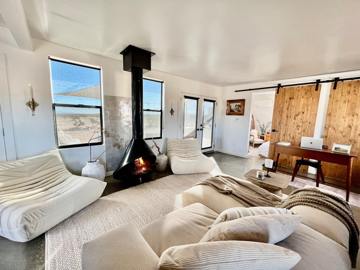 High Desert Haus – Uma escapada de luxo em um acre totalmente fechado com vista de 360° para o deserto. 🌵✨ Relaxe na piscina de água salgada aquecida inspirada em Amangiri e na banheira de hidromassagem, aproveite o mural personalizado ou jogue pickleball. Relaxe no cinema ou retire-se para acomodações espaçosas, incluindo uma suíte king, duas camas queen e opções adicionais para dormir — hospedando confortavelmente até 8 hóspedes. Aceita cães, carregador de veículos elétricos, lareira, redes e muito mais — a apenas 5 minutos da cidade e a menos de 15 minutos do Parque Nacional de Joshua Tree.