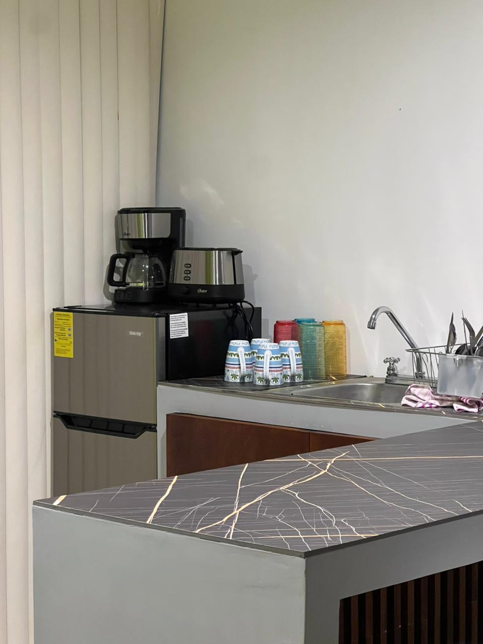 Fique no coração de Acayucan num mini apartamento prático e acolhedor, ideal para viagens de negócios ou descanso. Desfrute de uma confortável cama de casal, TV, ar condicionado e ventoinha para o seu conforto. A cozinha está equipada com um mini-frigorífico, máquina de café, mesa e utensílios básicos, bem como uma poltrona com uma mesa de apoio, armário e casa de banho privativa com um espelho. A sua localização central mantém-no perto de lojas, restaurantes e transportes, tornando a sua estadia ainda mais prática e agradável.