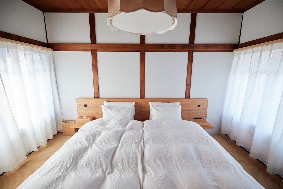 Um quarto no segundo andar de um prédio de dois andares. No primeiro andar há uma entrada e um banheiro com chuveiro, e a entrada principal e o restaurante ficam separados. Além de ser usado como acomodação em um destino de viagem, os móveis e o espaço foram cuidadosamente projetados para que você possa aproveitar esta instalação sem pressa. A sala de jantar, equipada com uma cozinha de ilha, permite que você desfrute de música de alta qualidade através de alto-falantes de ponta. Aproveite o aroma e a textura do raro piso de pinho. Para a área do quarto, disponibilizamos um futon grosso em vez de uma cama, pensando também nas crianças pequenas. Além disso, a área do futon é ligeiramente elevada. É uma das acomodações mais próximas da Estação de Uno, com excelente acesso a ilhas remotas, como a Ilha Direta. Lojas de conveniência e restaurantes populares também estão próximos. Inglês disponível.