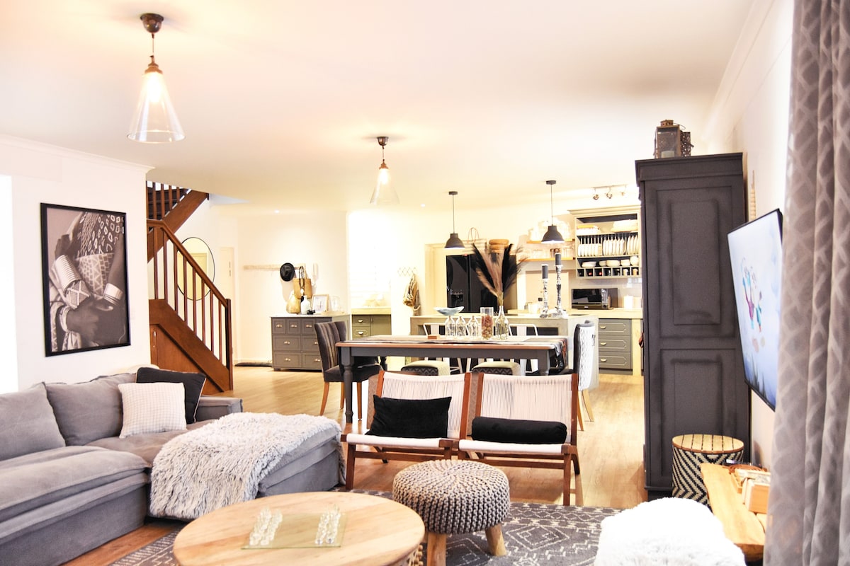 Fique numa quinta espaçosa dos anos 30, que aceita animais de estimação, na nossa propriedade vinícola familiar no Kalahari Verde. Perfeito para famílias, grupos e estadias mais longas que procuram privacidade, conforto e vistas deslumbrantes para as vinhas. Relaxe no grande alpendre, explore a propriedade, refresque-se na barragem natural e conheça os nossos simpáticos cães da quinta. Desfrute da conveniência do self-catering com fácil acesso ao Garden Café e à sala de degustação. A sua estadia inclui uma degustação gratuita dos nossos vinhos, brandies e licores premiados.