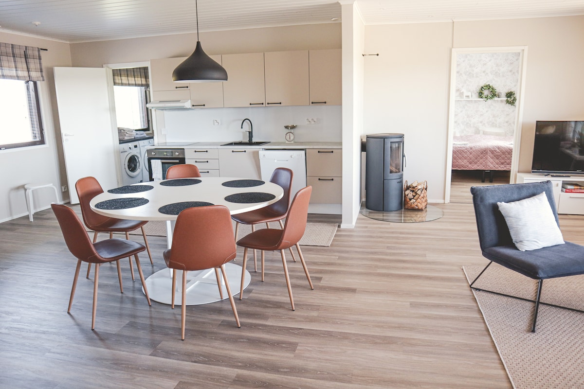 Você está sozinho, mas perto de tudo, quando você fica nesta aconchegante Pikkutalo. Há um acesso da rua através de um pequeno terraço para dentro da casa. O apartamento tem uma pequena sala de jantar e cozinha, banheiro e sala de estar separada. A cama é uma cama de casal de 140 cm de largura. Além disso, um sofá-cama (70/140*200 cm) deve ser aberto. Quando solicitado, um colchão pode ser providenciado para uma quinta pessoa. O apartamento tem piso aquecido e uma bomba de calor de ar para resfriar no calor do verão. A loja de conveniência fica quase na esquina e a praça do mercado fica a cerca de 250 m.