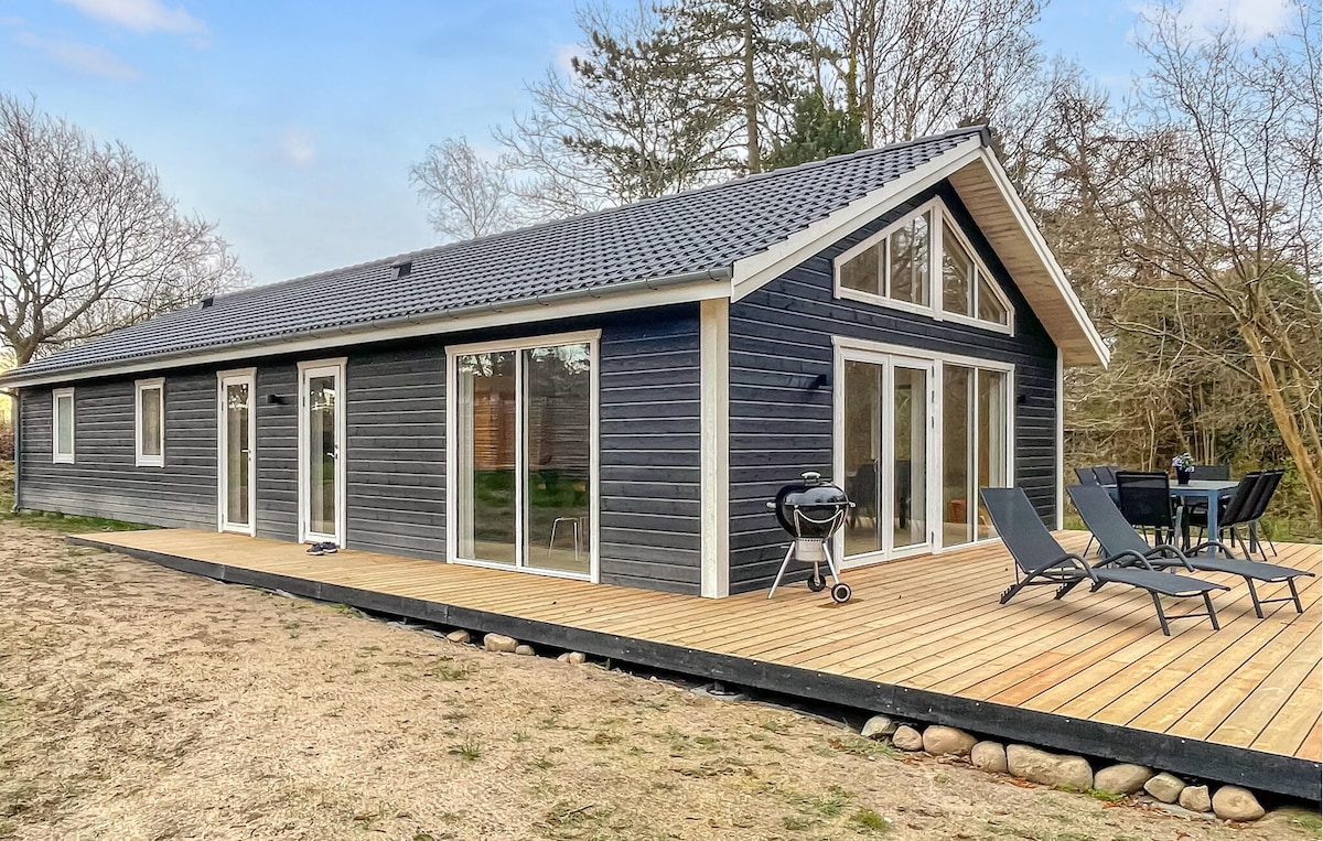 NOTA – A LIMPEZA FINAL ESTÁ INCLUÍDA – check-in às sextas-feiras. Casa de campo – cabana de madeira com 109 m² – localizada na pitoresca Dalby Strand, na Zelândia Ocidental. A casa tem 3 quartos, 1 casa de banho grande e bonita com banheira de hidromassagem, 1 cozinha grande em plano aberto com a sala de jantar e a sala de estar com uma lareira acolhedora. A casa de férias é luminosa e acolhedora e está localizada num terreno bem cuidado. Em redor da cabana, há um amplo terraço em mosaico com mobiliário de exterior e espreguiçadeiras. Há uma garagem coberta privada, construída em madeira redonda.