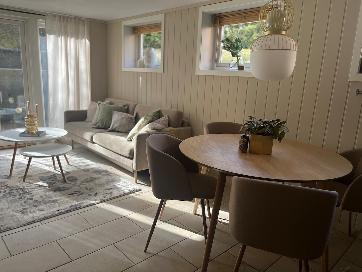 Apartamento leve e agradável, 50 m2. Ambiente encantador! Espaço perfeito para caminhadas e relaxamento. Entrada privada e pátio privado no exterior. Estacionamento gratuito fora da casa. Um quarto com cama de casal e uma cama de solteiro. 12 minutos a pé da paragem de autocarro, 23 minutos de autocarro de Oslo. 4 km de Sandvika, 8 km de Asker. Bairro tranquilo e tranquilo. Vista para o mar, a poucos metros do cais e das praias. Alugue um caiaque individual/duplo. Bicicletas, equipamento de pesca e equipamento de ténis disponíveis gratuitamente.