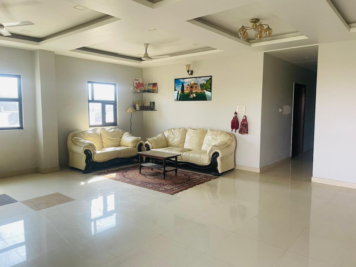 1. Esta casa totalmente independente fica no segundo andar e oferece-lhe total privacidade e todo o espaço só para si. 2. Cuidador disponível 24 horas por dia, 7 dias por semana, para prestar assistência, no local ou por telefone, conforme necessário. 3. Desfrute de um conforto superior com colchões novos de 8 polegadas em todos os quartos. 4. É permitido o acesso à cozinha para preparações ligeiras (chá, café, massa instantânea, etc.). Está disponível um serviço de cozinha completo por 500 ₹ por dia, a pagar no local.
