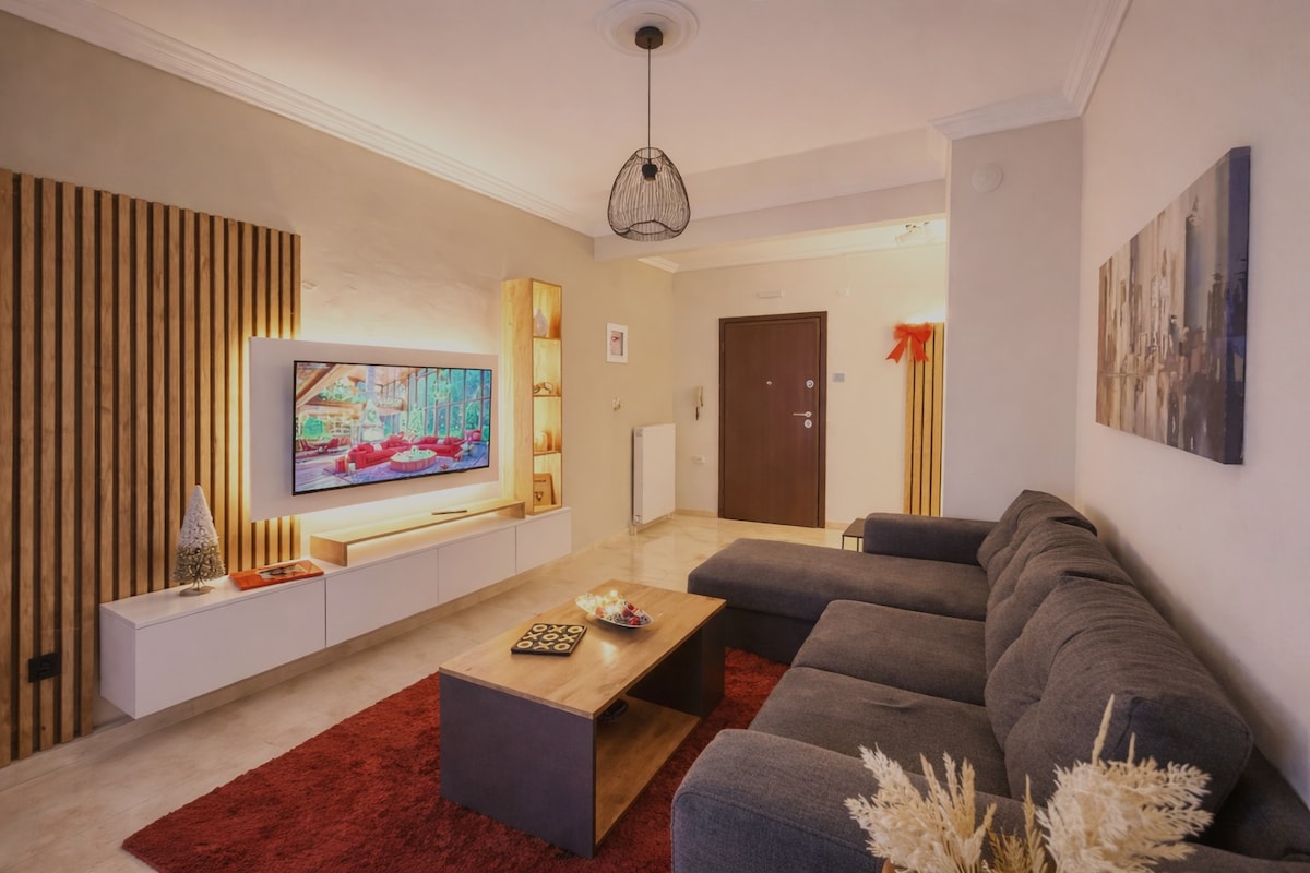 Sinta-se em casa em Serres - Uma experiência acolhedora e especial! Você está procurando algo mais do que uma simples estadia? Bem-vindo à sua casa em nossa bela área, a apenas 10 minutos a pé do animado centro de Serres. Nosso apartamento está localizado no 4º andar de um prédio de seis andares e oferece estacionamento gratuito, câmeras de segurança e elevador. Com decoração aconchegante e todos os confortos. Oferece banheiro espaçoso, cozinha totalmente funcional, cama de casal confortável e sala de estar espaçosa.