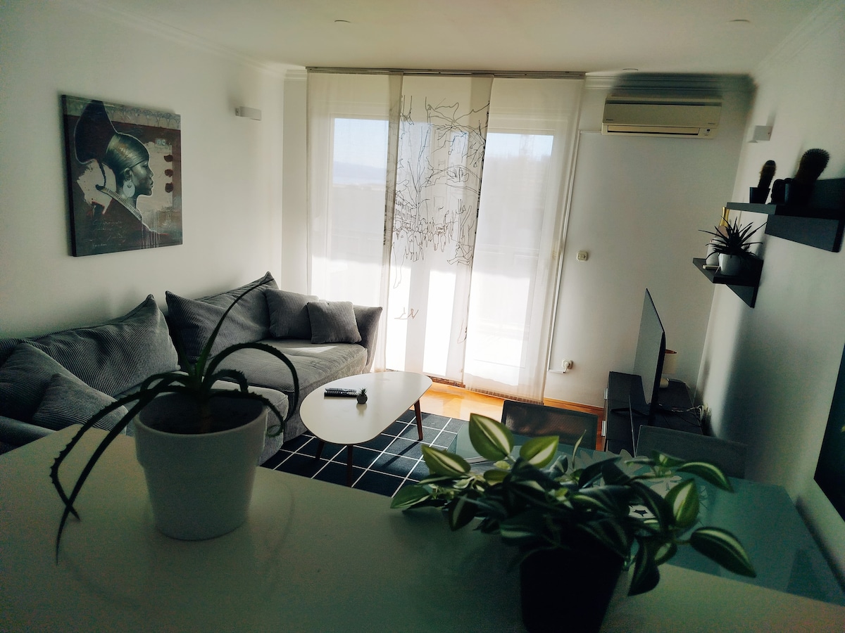 Apartamento luminoso e limpo com varanda perto da praia. Perfeito para casais. Há um quarto com uma cama king size, sala de estar, cozinha e casa de banho. Se precisar de um lugar onde queira recarregar as baterias, este é um apartamento perfeito para si. Tem Internet sem fios, TV, ar condicionado e máquina de lavar. O apartamento fica a 10 minutos a pé da nova praia de Žnjan e a 10 minutos de carro do centro da cidade e do parque-floresta Marjan. Há também um grande supermercado do outro lado da rua.