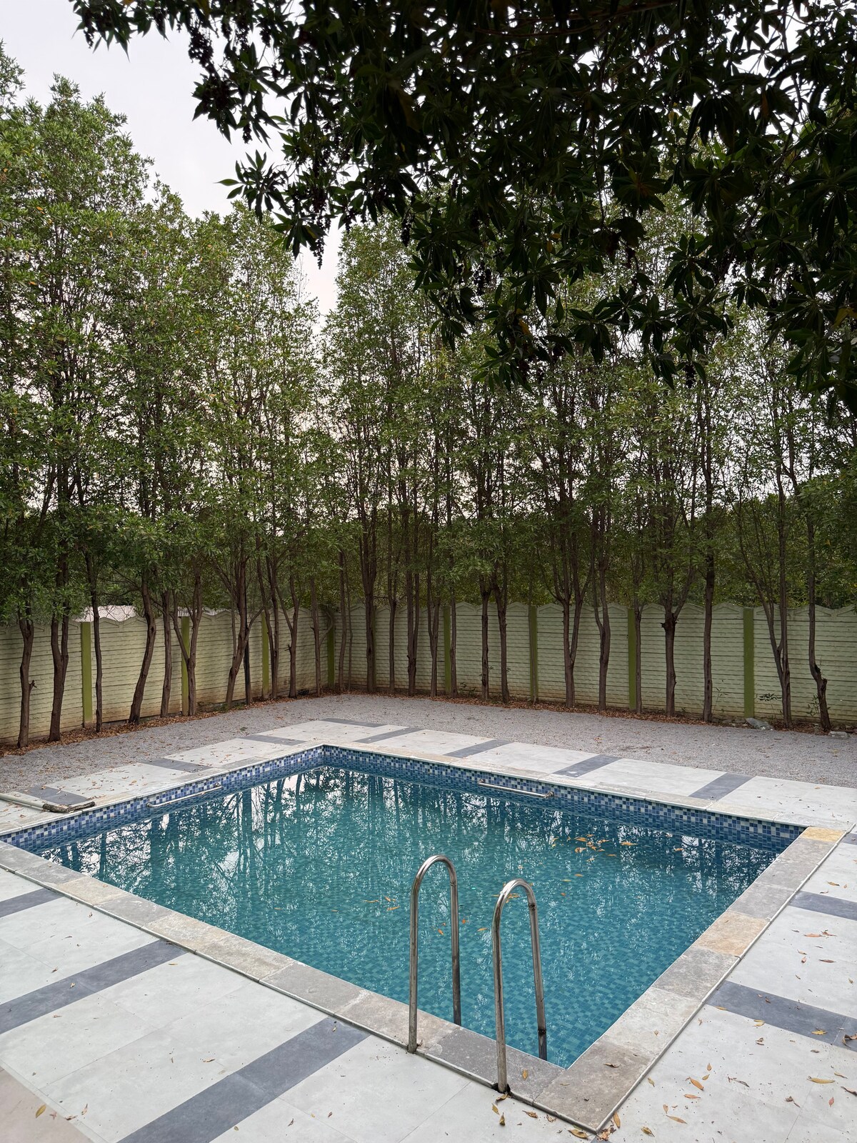 3 quartos com ar condicionado e casas de banho anexas, sala com TV, projetor exterior visível da piscina e área de relvado, Wi-Fi, cozinha; 3 camas de casal e 9 colchões extra. USP: grande piscina com piscina para crianças, projetor ao ar livre, ténis de mesa, conjunto de críquete, badminton, terraço, enorme relvado