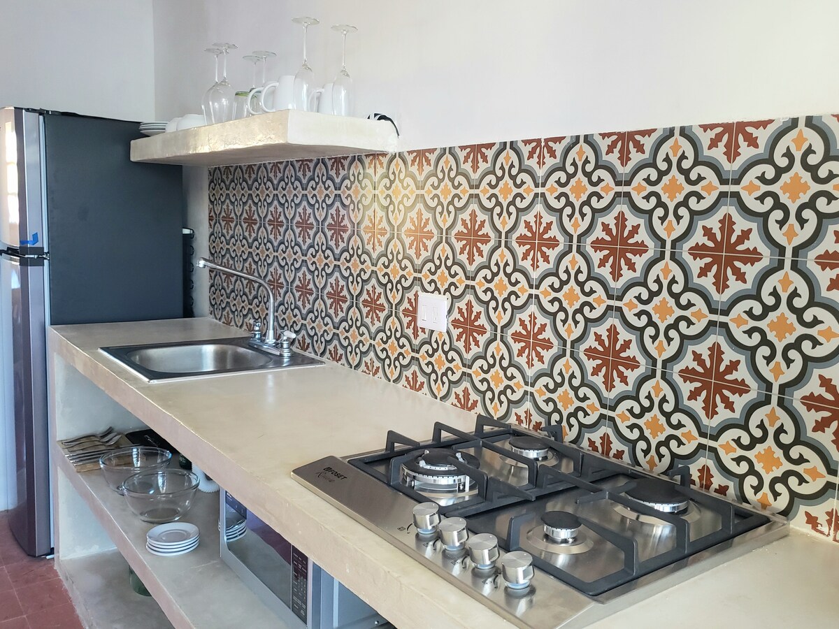 Damos-lhe as boas-vindas à Casa Iskínah, o seu retiro acolhedor no Centro de Mérida. Situado no agradável bairro de Chuminopolis, este apartamento de 2 quartos maravilhosamente renovado combina conforto e estilo. Experimente a autêntica vida de Mérida entre moradores e viajantes, longe do caos da cidade. Comece o seu dia no tranquilo pátio traseiro com um mergulho refrescante na piscina de imersão privada! Cada quarto tem camas queen size macias e a espaçosa área de estar é perfeita para relaxar no nosso sofá confortável após um dia de exploração.