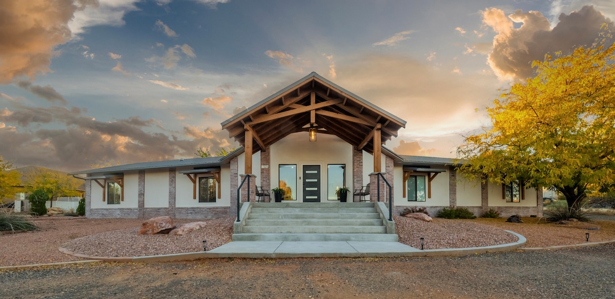 Esta casa é confortável e elegante. Os 2 quartos têm camas king size confortáveis. Trilhos de caminhada mesmo à porta da frente. O local perfeito para o lançamento do balão de ar quente durante o Balloons & Tunes em fevereiro de cada ano! Perto de Zion, Bryce, Grand Canyon, desfiladeiros e muito mais. Quando voltar da aventura, relaxe na sua própria banheira de hidromassagem privada enquanto contempla o céu estrelado! A nossa casa maior, a Mighty 5 Main, está localizada na mesma propriedade, caso o seu grupo precise de mais espaço.