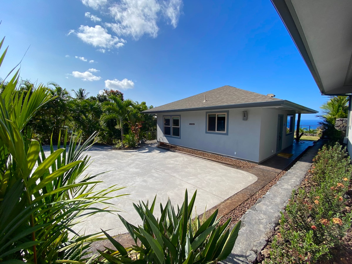 Este apartamento de um quarto com vista para o mar é o espaço perfeito para você relaxar e descontrair depois de um dia de diversão! Tem a sua própria entrada privada e inclui uma cama queen size, um sofá-cama, uma geladeira, um micro-ondas, um cooktop, uma máquina de lavar/secar roupa compartilhada e churrasqueira! Nossa casa fica a uma altitude legal de 1300' com pôr do sol deslumbrante. Para os nossos companheiros aventureiros, fica a apenas 10 minutos da Baía de Keauhou, a 15 minutos da cidade de Kona para o norte ou a 2 passos de mergulho com snorkel para o sul.