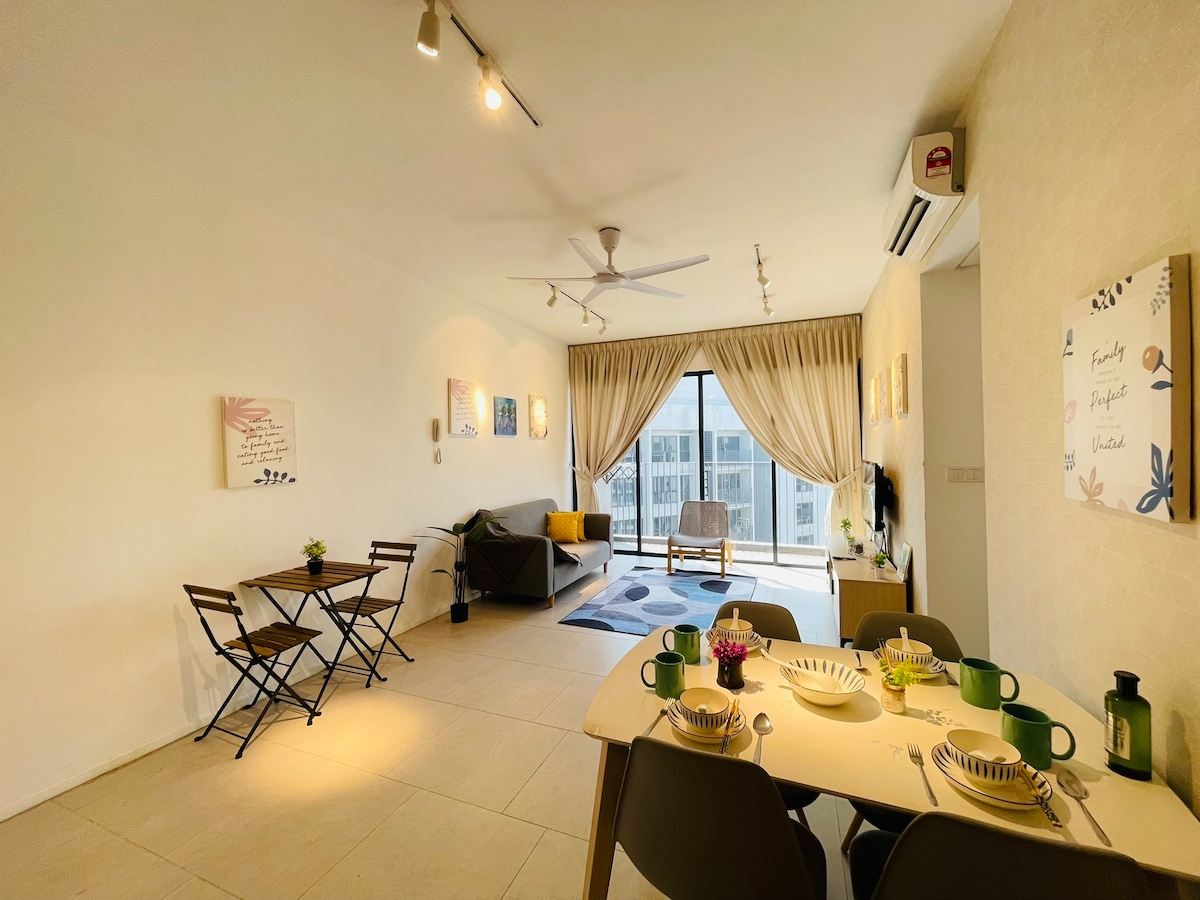 Aldridge Residence @EMIRA RESIDENCE opposite AEON Mall 882 sq ft apartment with 2 bedrooms, 1 sofa bed & 2 toilets with full air conditioner upscale apartment with great facilities & amenities. Equip with pocket spring mattresses for health benefits & comfort, water heaters, fridge, microwave, hair dryers, water filter, 4K TV, complimentary coffee & tea & 2 parking spaces for your convenience! *Sofa bed (double-bed size) comfortably sleep for 2 guests. "Feel like a hotel, feel like a home".