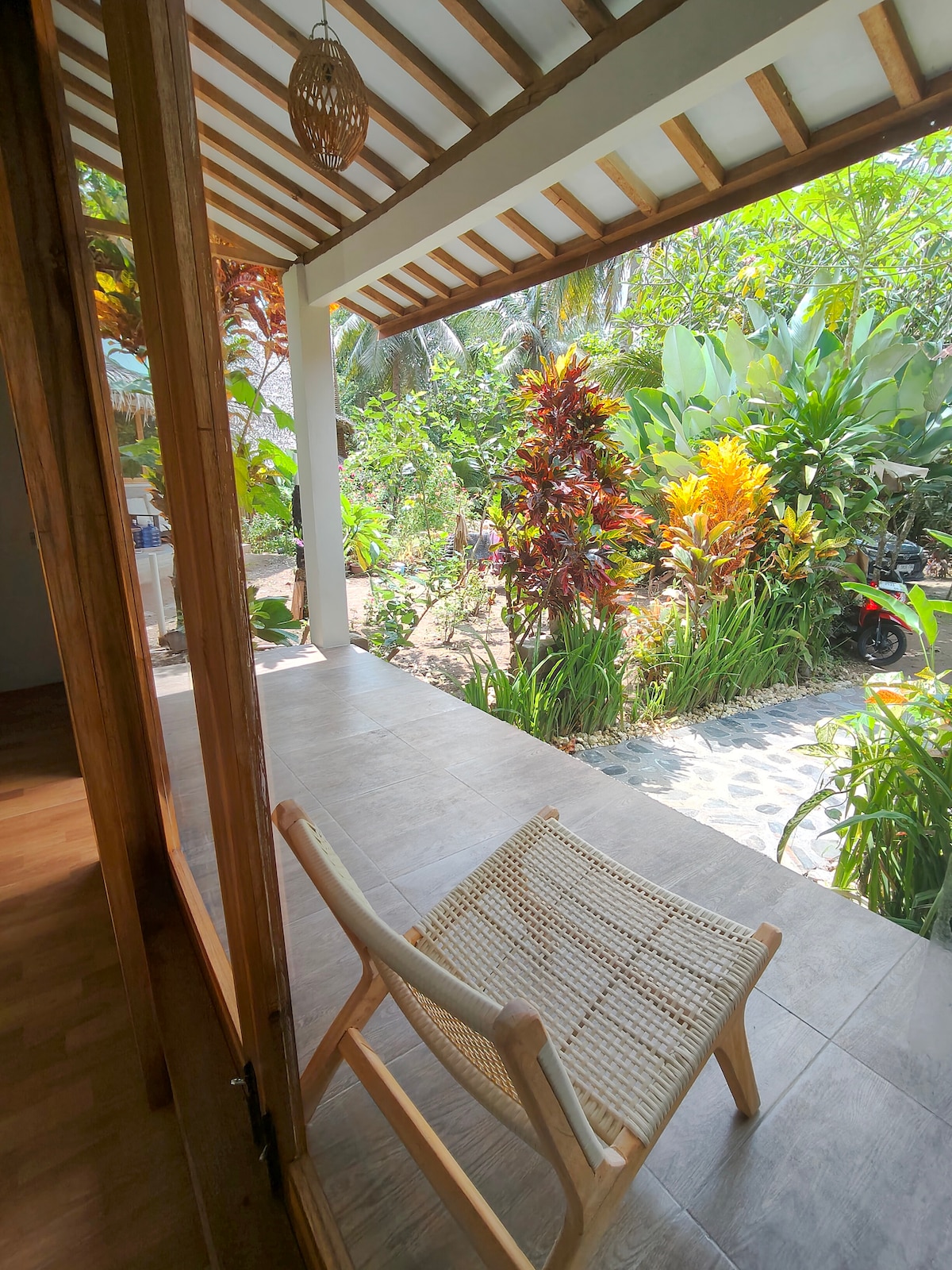 Faites une pause et détendez-vous dans cette oasis paisible. Proche de la plage et au calme. Le logement est à 5 minutes du surf en scooter, il est facile de louer un scooter avec un rack de surf, nous pouvons organiser la location d'un scooter, le transport depuis Jakarta en voiture où de l'aéroport local, Nusa Wiru, vous pouvez arriver en avion de Jakarta en une heure, cet aéroport est à 10 minutes de la maison. Vous aurez de l'eau chaude pour la douche et la chambre est maintenant climatisée.