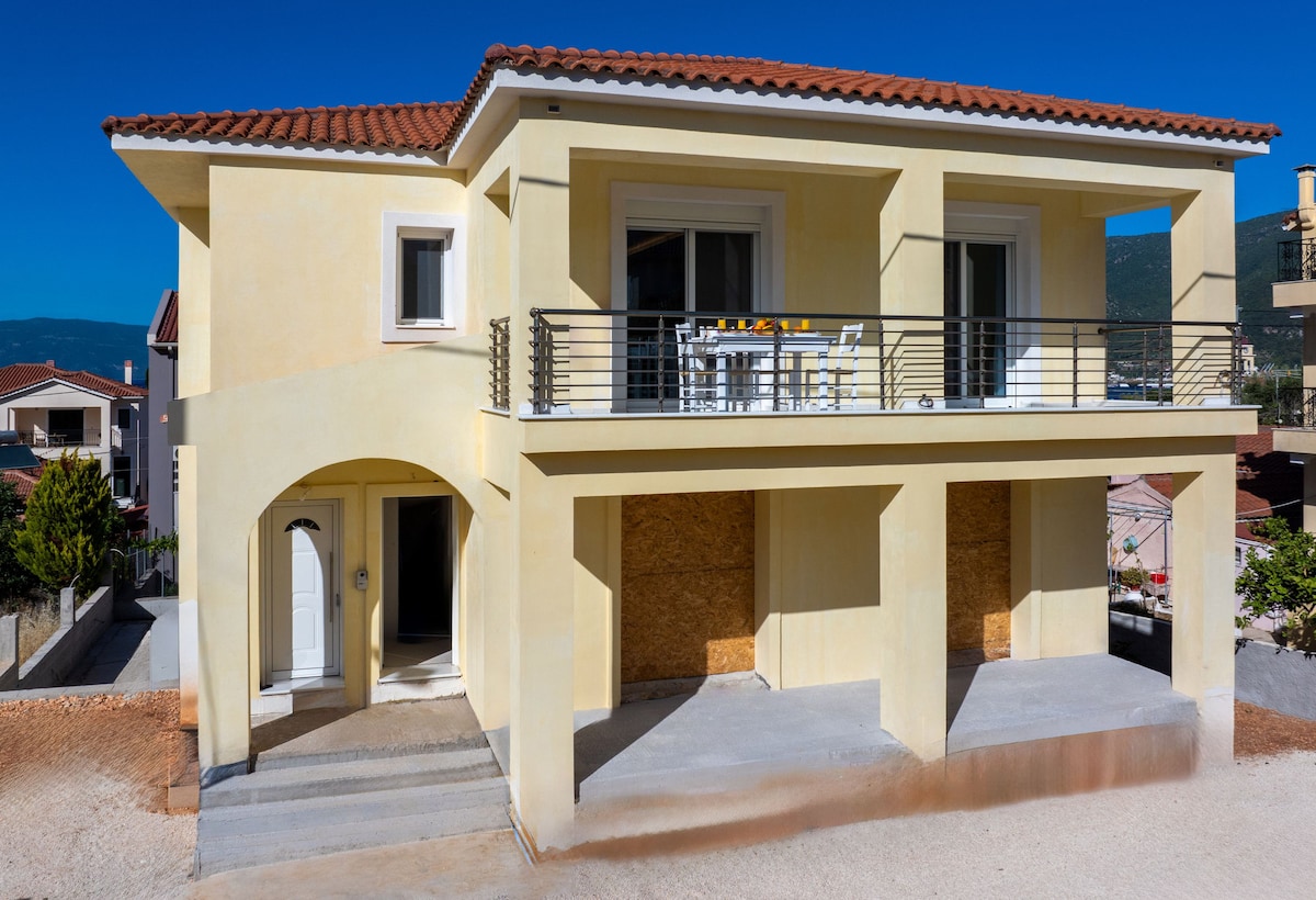 Apartamento recém-construído com vista para o mar (no 1º andar) localizado numa zona tranquila de Karavomilos Kefalonia a apenas 15 metros do mar. Tem três quartos, uma cozinha de espaço aberto e uma grande sala de estar/refeições com lareira. Os dois quartos têm acesso a uma grande varanda onde pode ver o espetacular Seaview em toda a Ítaca e a montanha de Sami a emergir na água cristalina, onde se pode nadar desde o início da manhã até à noite. Todos os quartos estão equipados com ar condicionado.