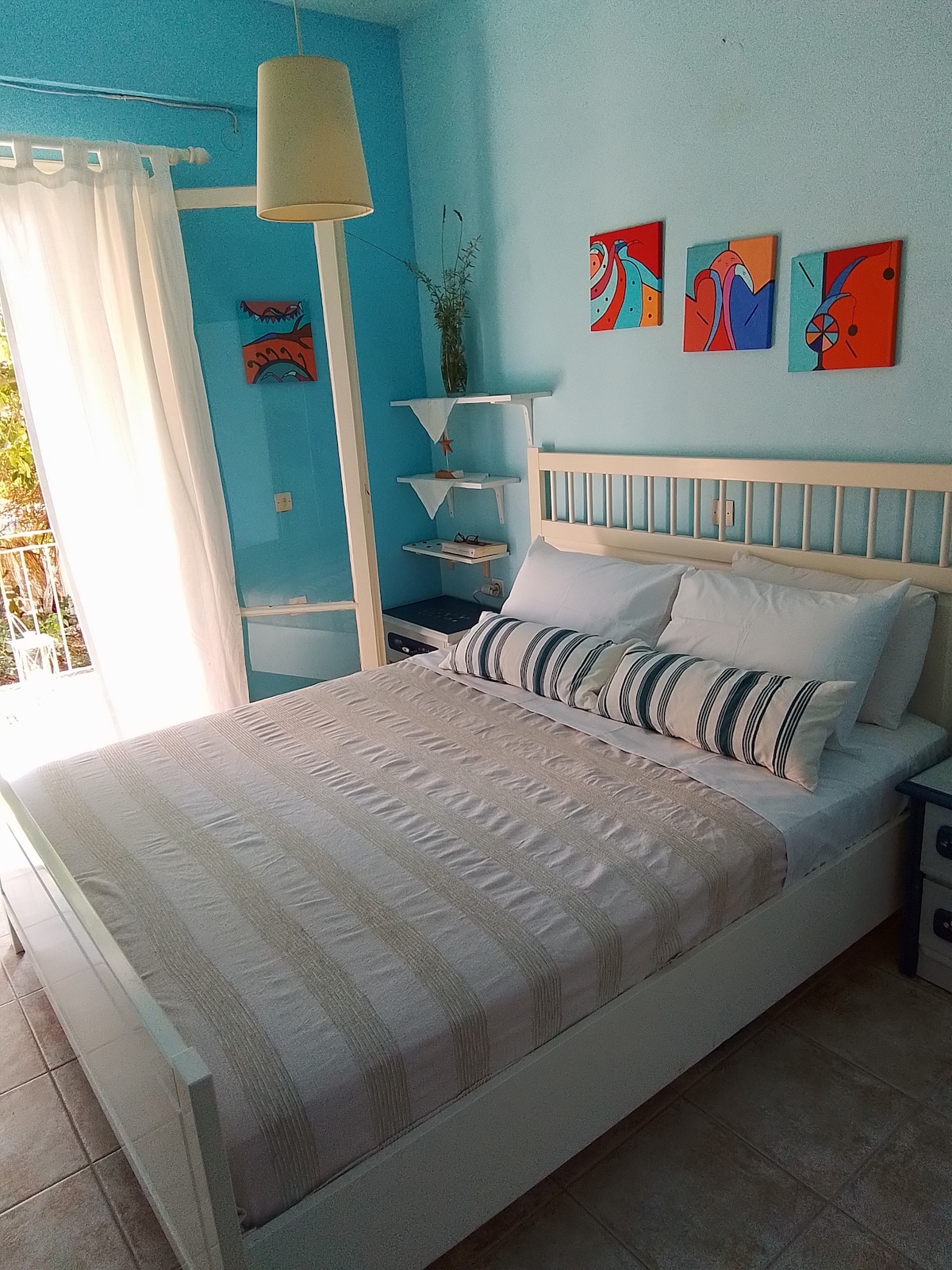 Este é um estúdio de pedra a poucos minutos a pé da praia. Embora esteja localizado a uma curta distância do porto de Kioni, um dos portos mais populares e bonitos do Jónico, a uma curta distância a pé do outro lado, vai encontrar-se numa área rural, onde os agricultores guardam os seus animais e colhem a terra com oliveiras. É uma controvérsia, mas é aqui que dois estilos de vida contraditórios se encontram. Uma receção calorosa está à sua espera, com produtos de alta qualidade, presentes da terra do Ithacan.