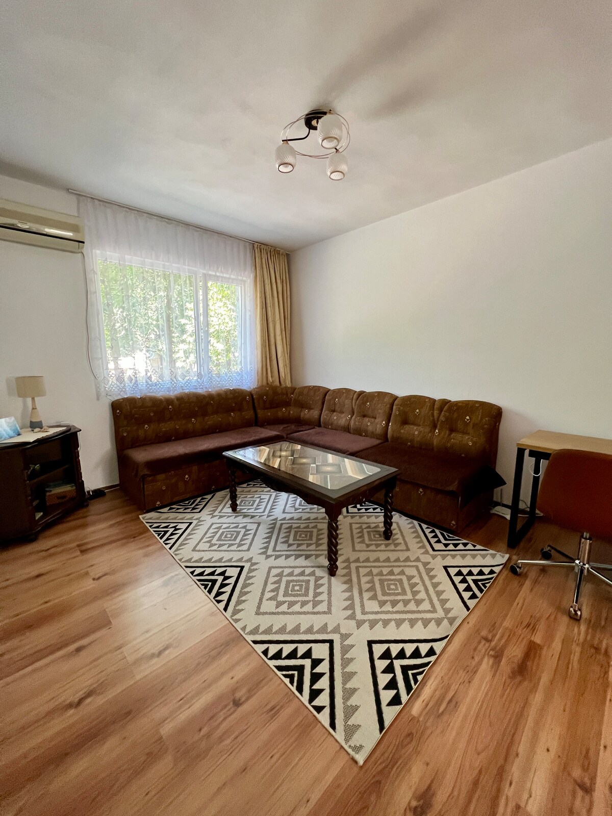 Caros Hóspedes, é um apartamento compacto no centro da cidade de Kardzhali. O apartamento é totalmente mobilado e tem tudo o que necessita. Fica num ambiente tranquilo, embora esteja no centro da cidade e onde o quarto de dormir é você, há uma vista com um pequeno jardim para um figo três. Há duas camas separadas e no quarto há um colchão extraível para duas pessoas na sala de estar. Atenciosamente, Tonka.