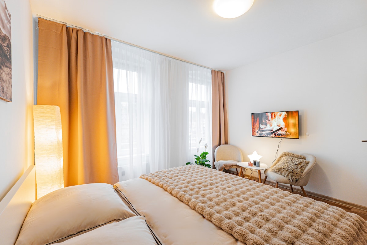 Alojamento único em apartamentos no distrito de spa de Karlovy Vary, perto do Mill Colonnade e fontes termais. Todos os apartamentos estão totalmente equipados, os quartos têm camas confortáveis para garantir um sono tranquilo, uma televisão plana com acesso à Internet. Cada um tem uma casa de banho e sanita, uma cozinha com todas as comodidades, incluindo um forno, uma chaleira elétrica, um micro-ondas, um fogão, pratos. Serão fornecidas toalhas e uma farmácia na casa de banho em cada quarto. Está disponível um terraço para se sentar.