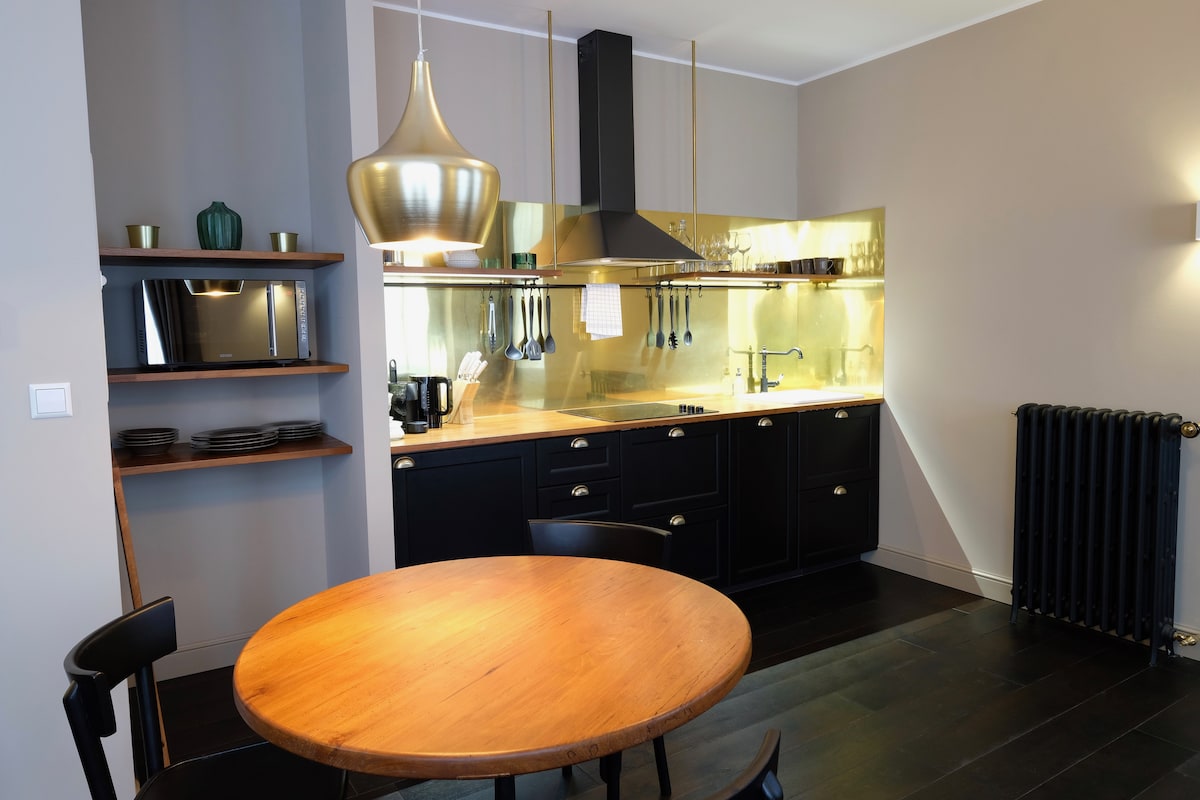 Bem-vindo ao elegante apartamento de design com uma cozinha totalmente equipada. → Ambiente luminoso e cheio de luz → Varanda sudoeste com sol da tarde e vista → Wi-Fi rápido (1000 Mbps) → Interior moderno para o máximo conforto → Perfeito para trabalho e relaxamento Um lugar onde se sente imediatamente em casa.