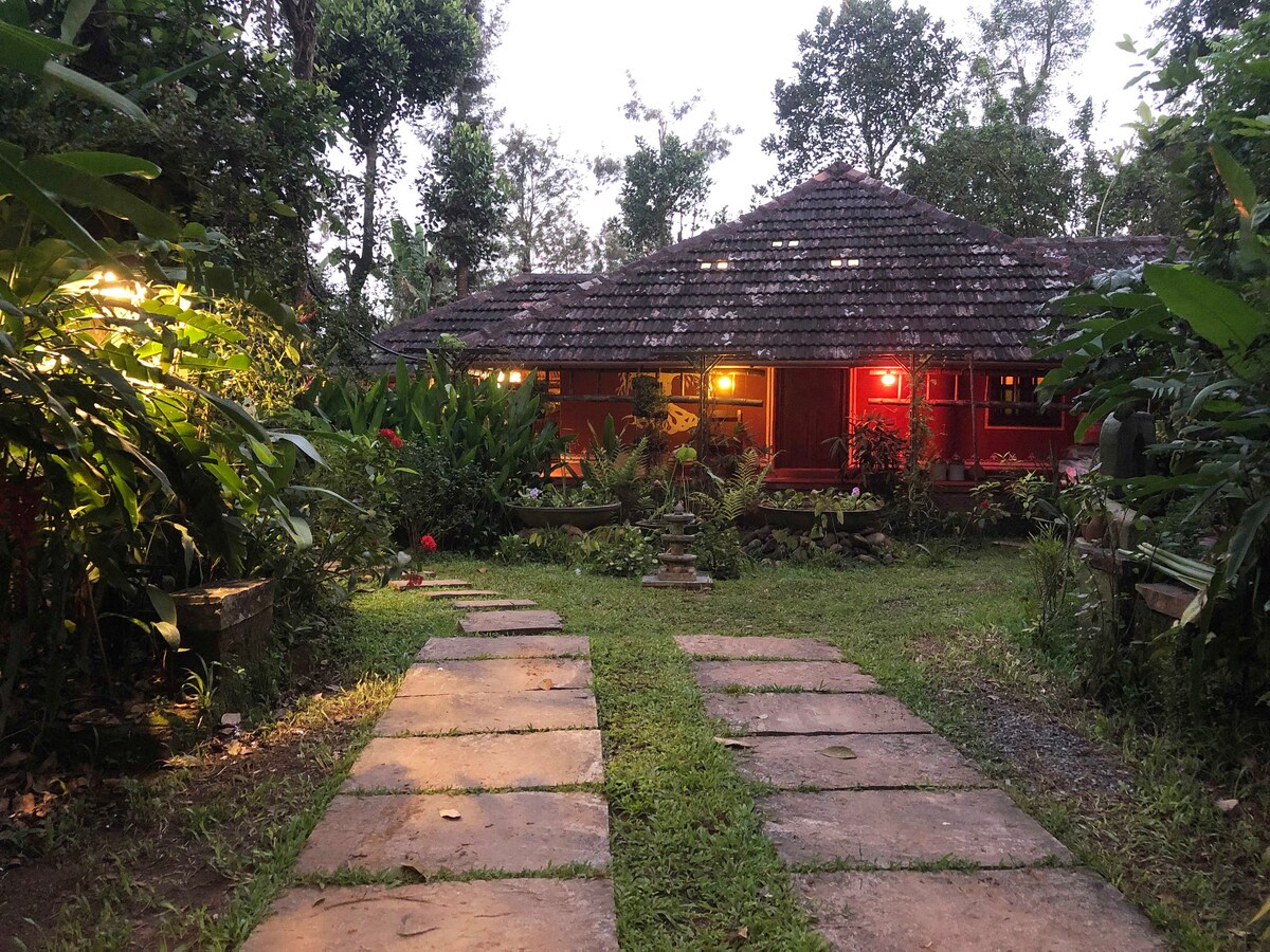 Reconecte-se com a natureza e consigo mesmo nesta escapadela inesquecível. A nossa villa é uma casa privada exclusiva com 3 quartos, cozinha e varandas espaçosas e terraços com vistas incríveis. Atividades: pode caminhar até ao ponto de vista "Muneeswaran kunnu". Dê um mergulho num riacho próximo (ambos acessíveis a pé ou pode escolher um passeio de jipe) Estamos localizados na parte norte de Wayanad, na fronteira com Coorg (~60 km de distância da área de deslizamento de terra de 2024).
