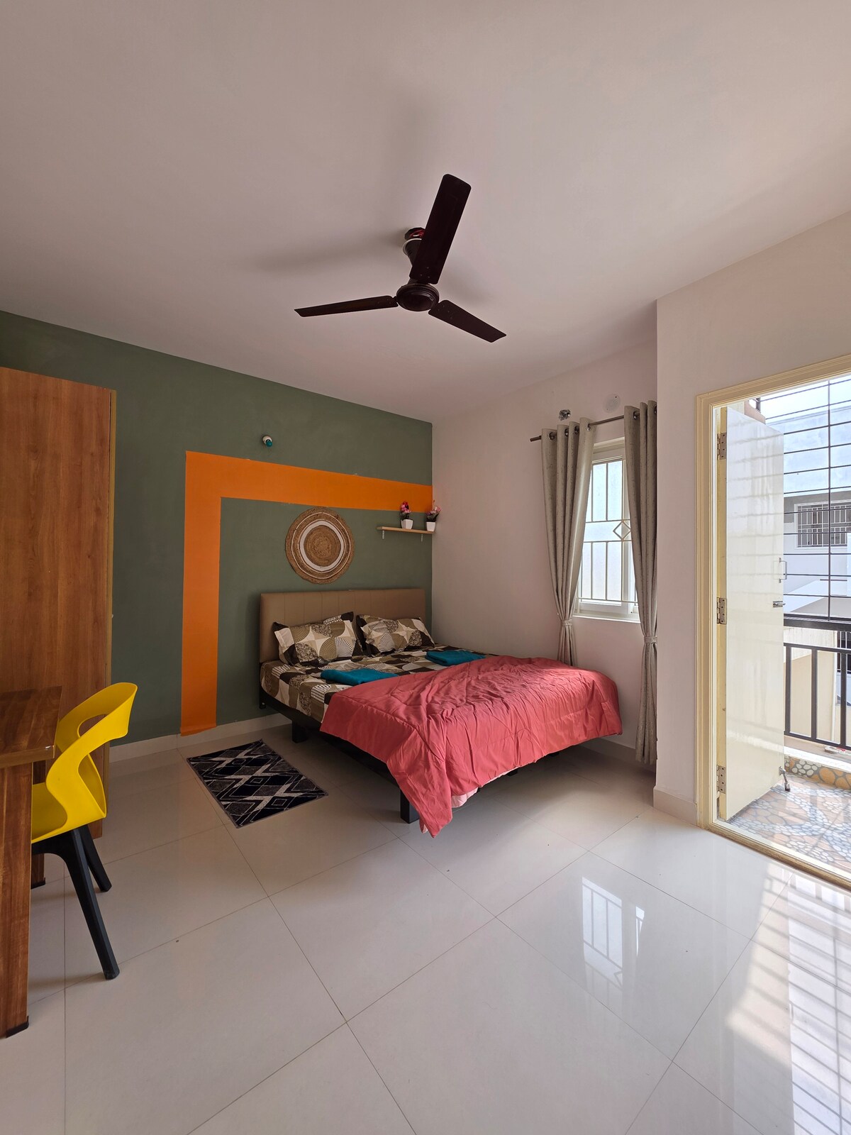 Casa de campo europeia: aconchegante 1BHK com varanda, Wi-Fi e atmosfera de jantar à luz de velas! Localizada perto de Vaishnavi Tech Park, Wipro e RGA Tech Park, a nossa casa é perfeita para trabalho e lazer. Desfrute das melhores cervejarias nas proximidades, como a Byg Brewski, a Bier Library e a Sarjapur Social. O Beige & Breeze oferece uma varanda acolhedora, interiores elegantes e um ambiente acolhedor, o seu retiro perfeito na cidade.